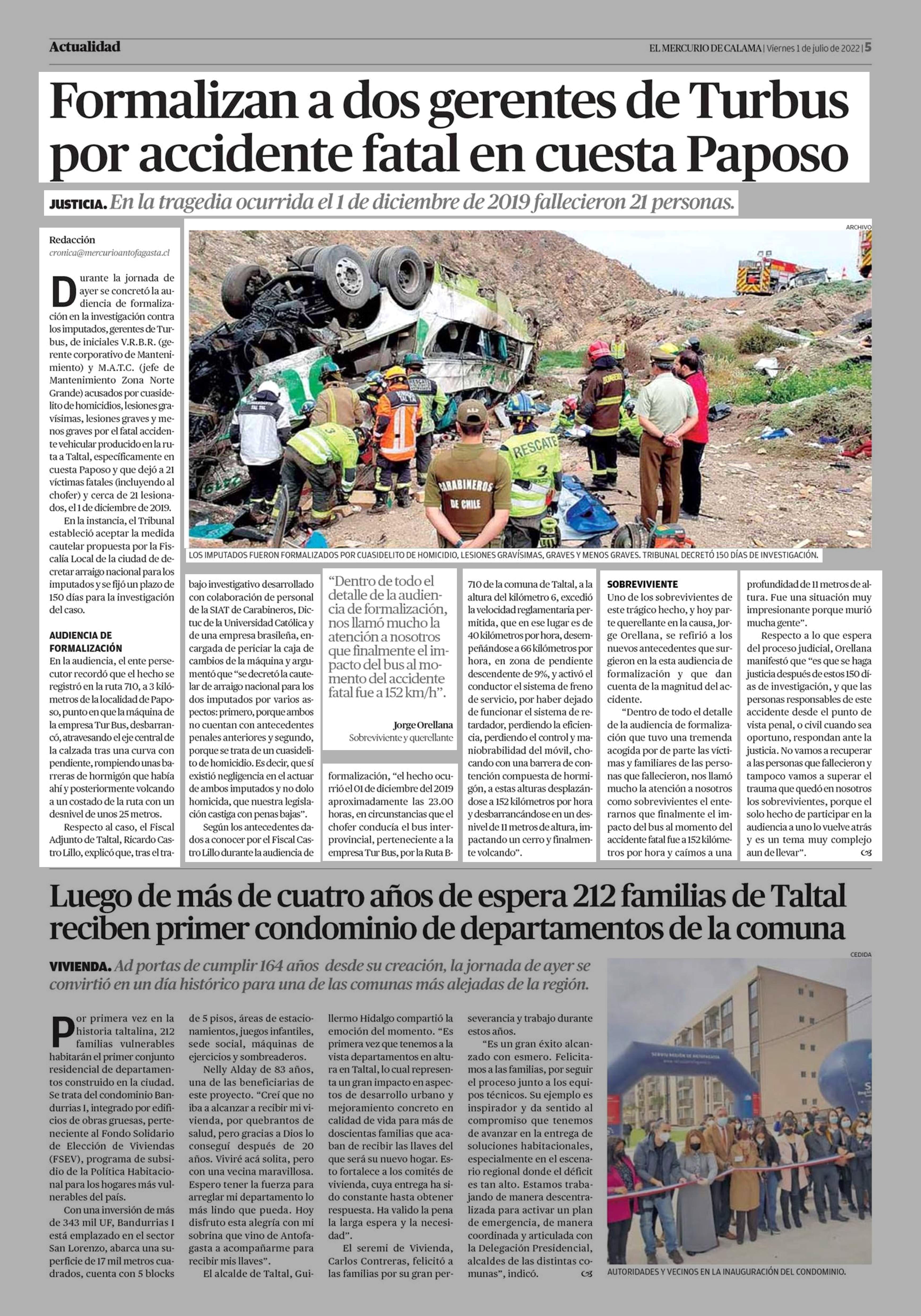 Formalizan a dos gerentes de Turbus por accidente fatal en cuesta Paposo 01-07-2022 El Mercurio de Calama |