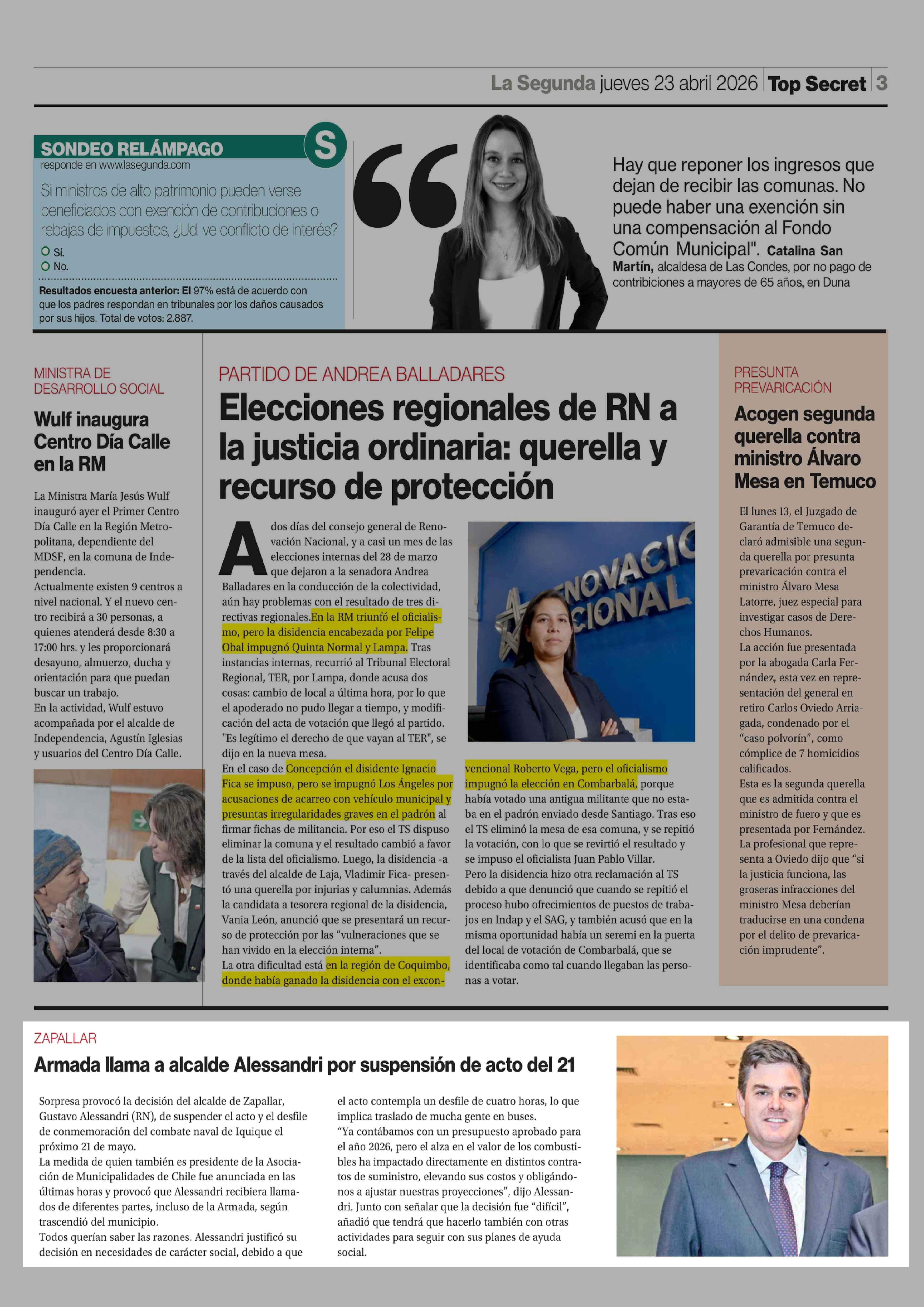 Armada llama a alcalde Alessandri por suspensión de acto del 21 23-04-2026 La Segunda |