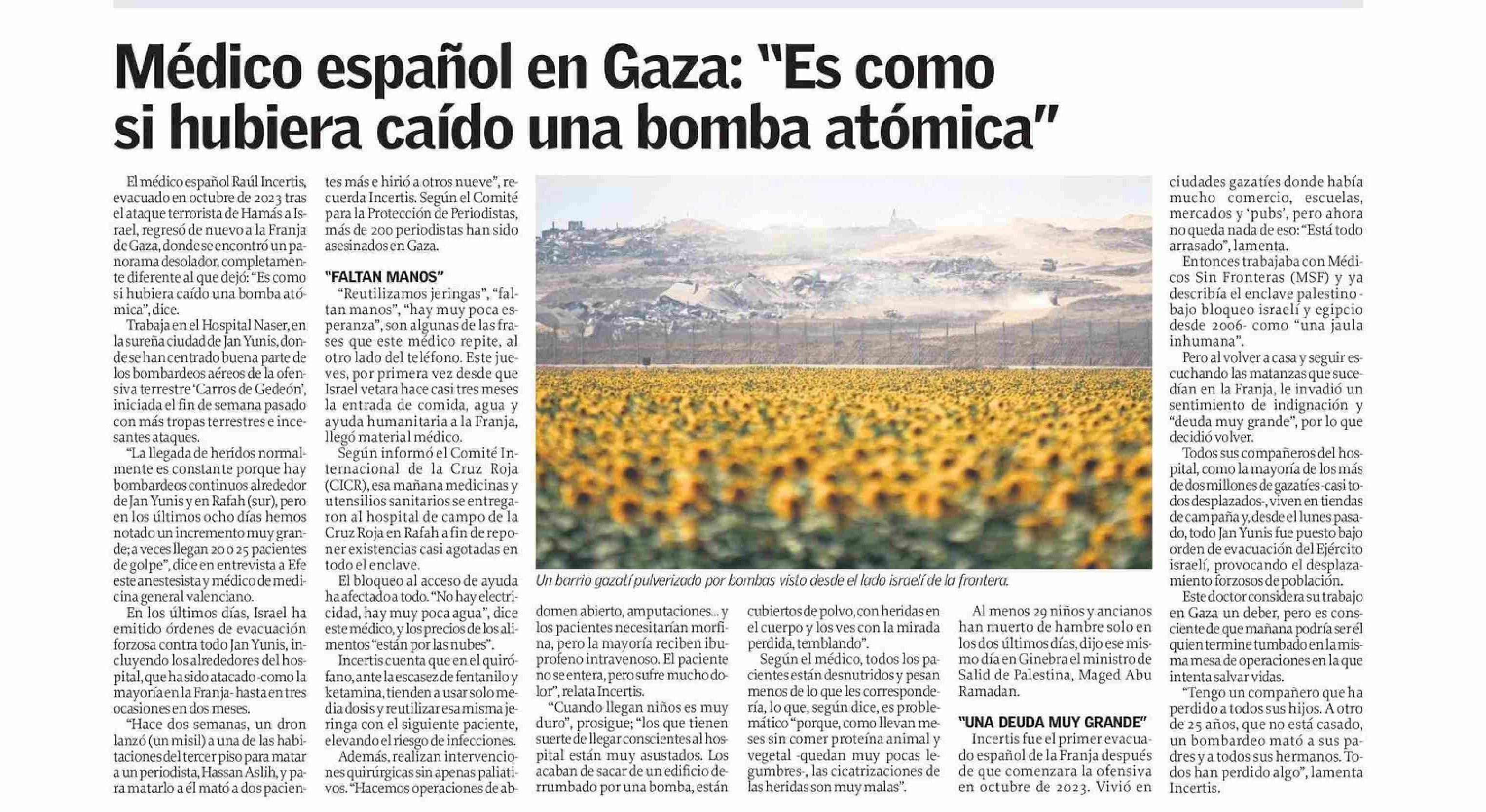 | Título: | Médico español en Gaza: “Es como si hubiera caído una bomba atómica” |
