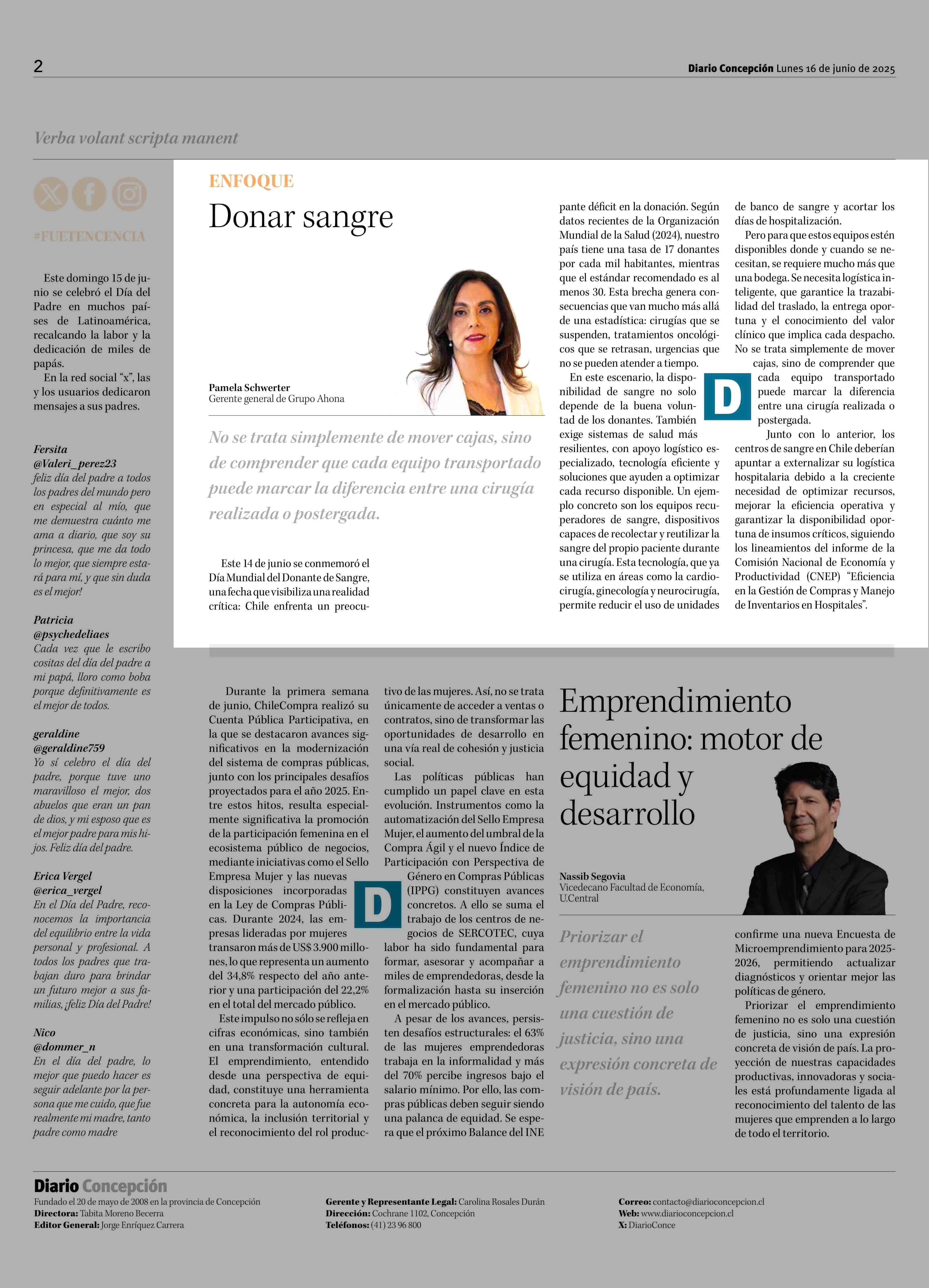 COLUMNAS DE OPINIÓN: Donar sangre 16-06-2025 Diario Concepción |