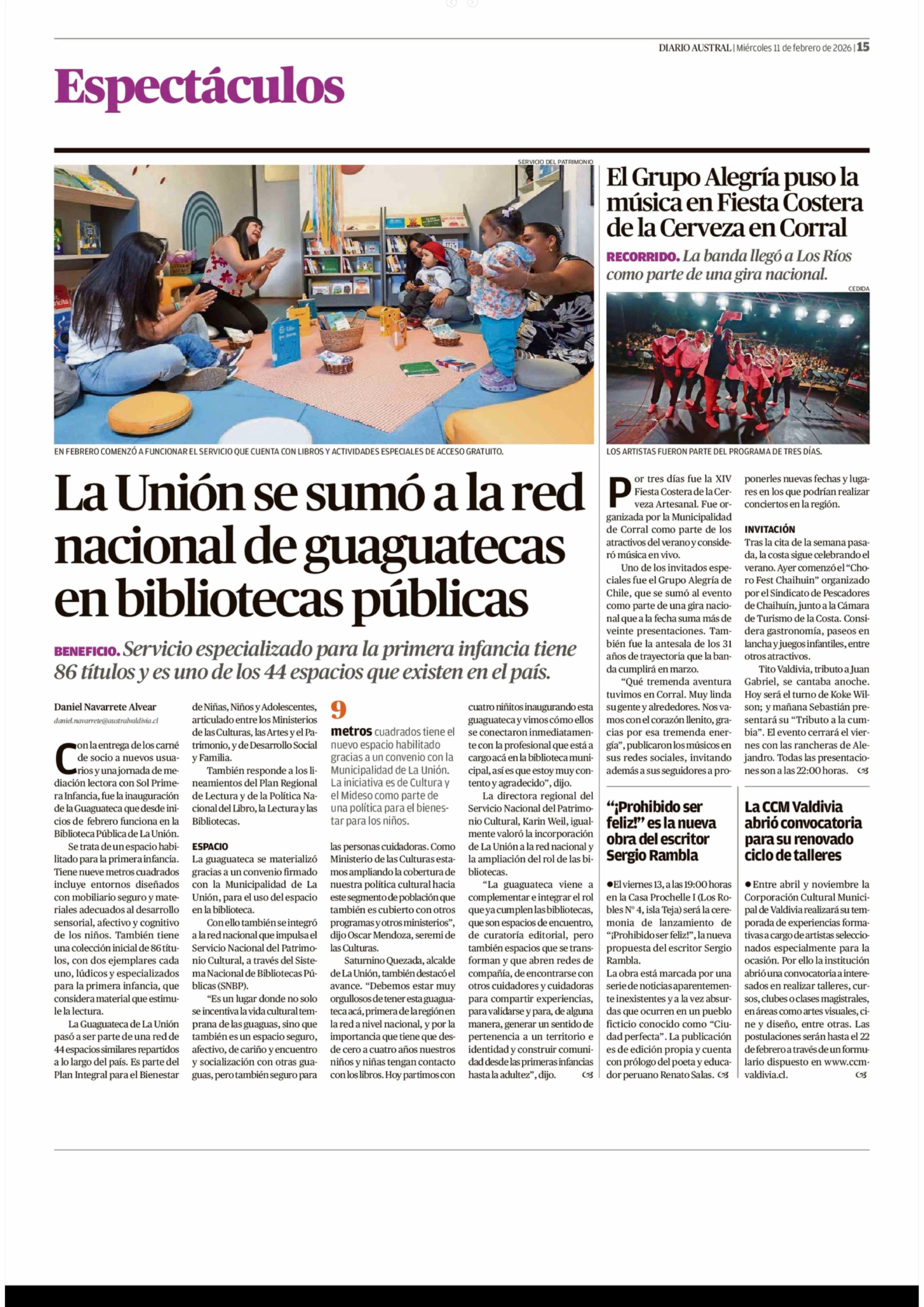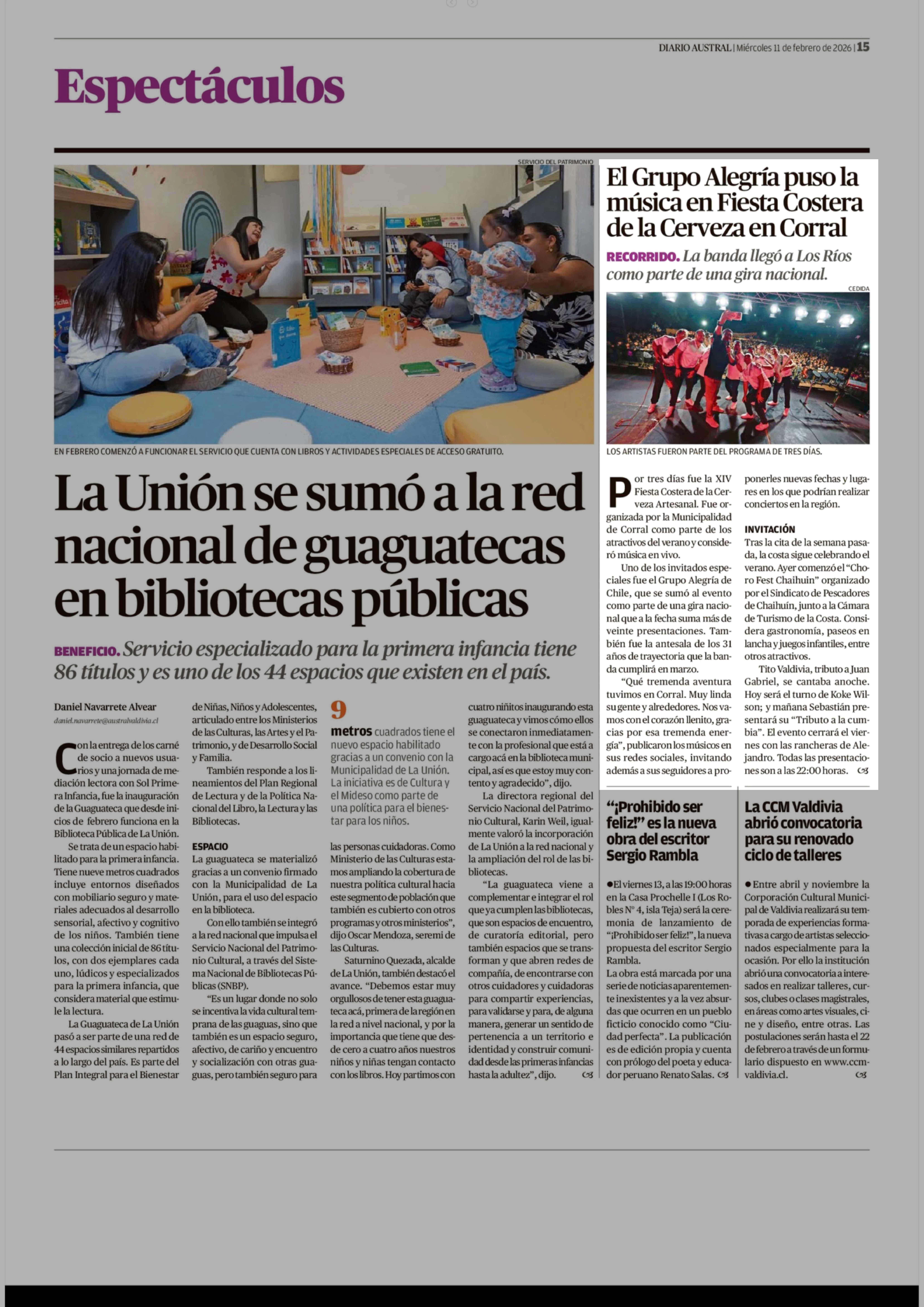 | Fecha: | 11-02-2026 | Sector: | Noticia general | Región: | Región de Los Ríos |