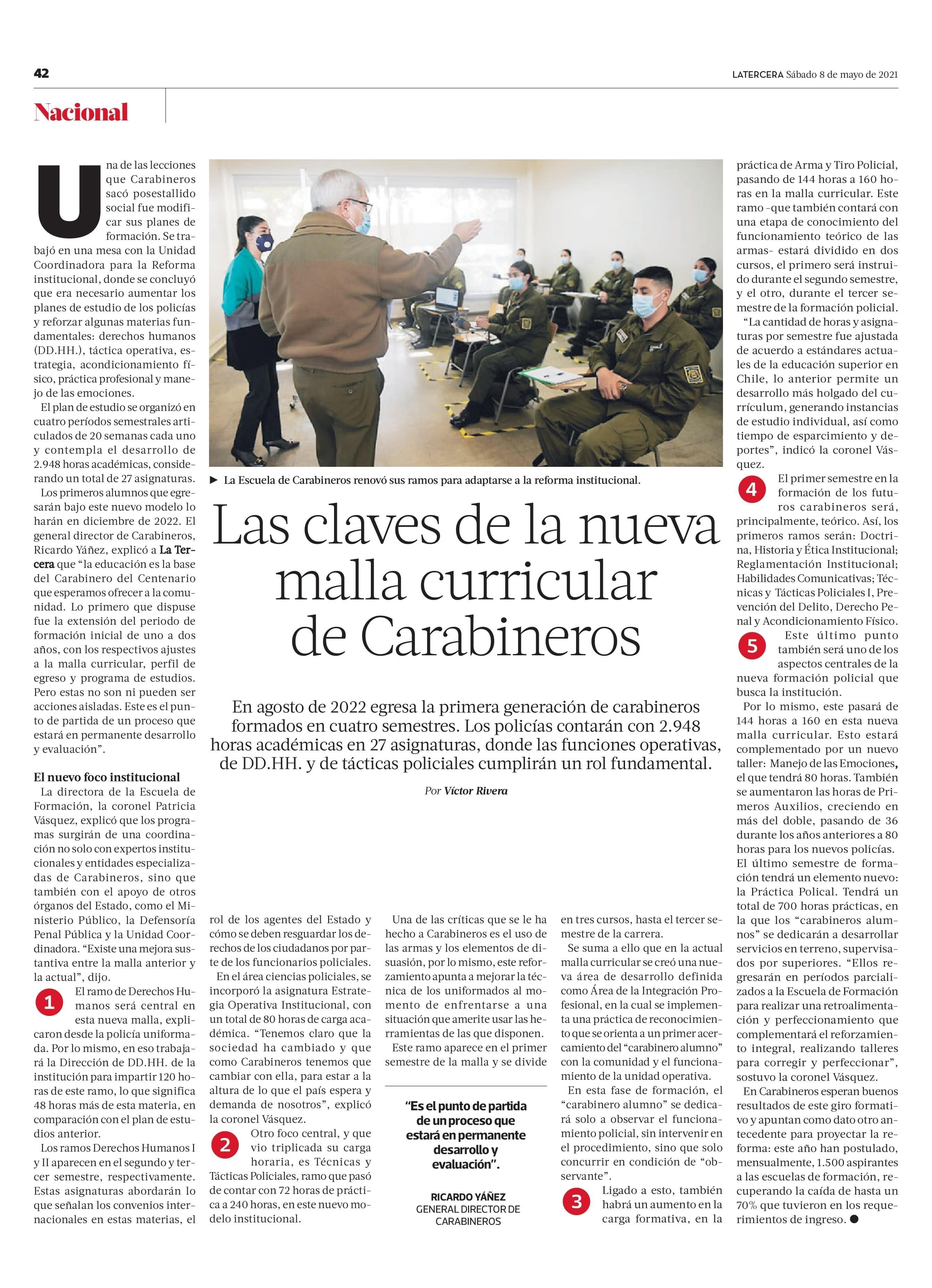 Las claves de la nueva malla curricular de Carabineros 08-05-2021 La Tercera |
