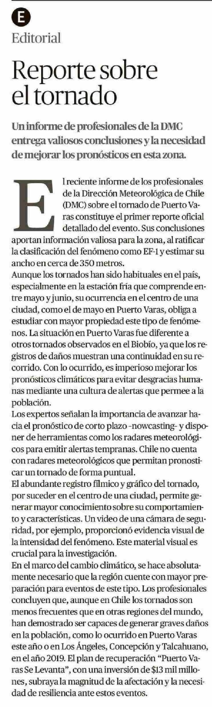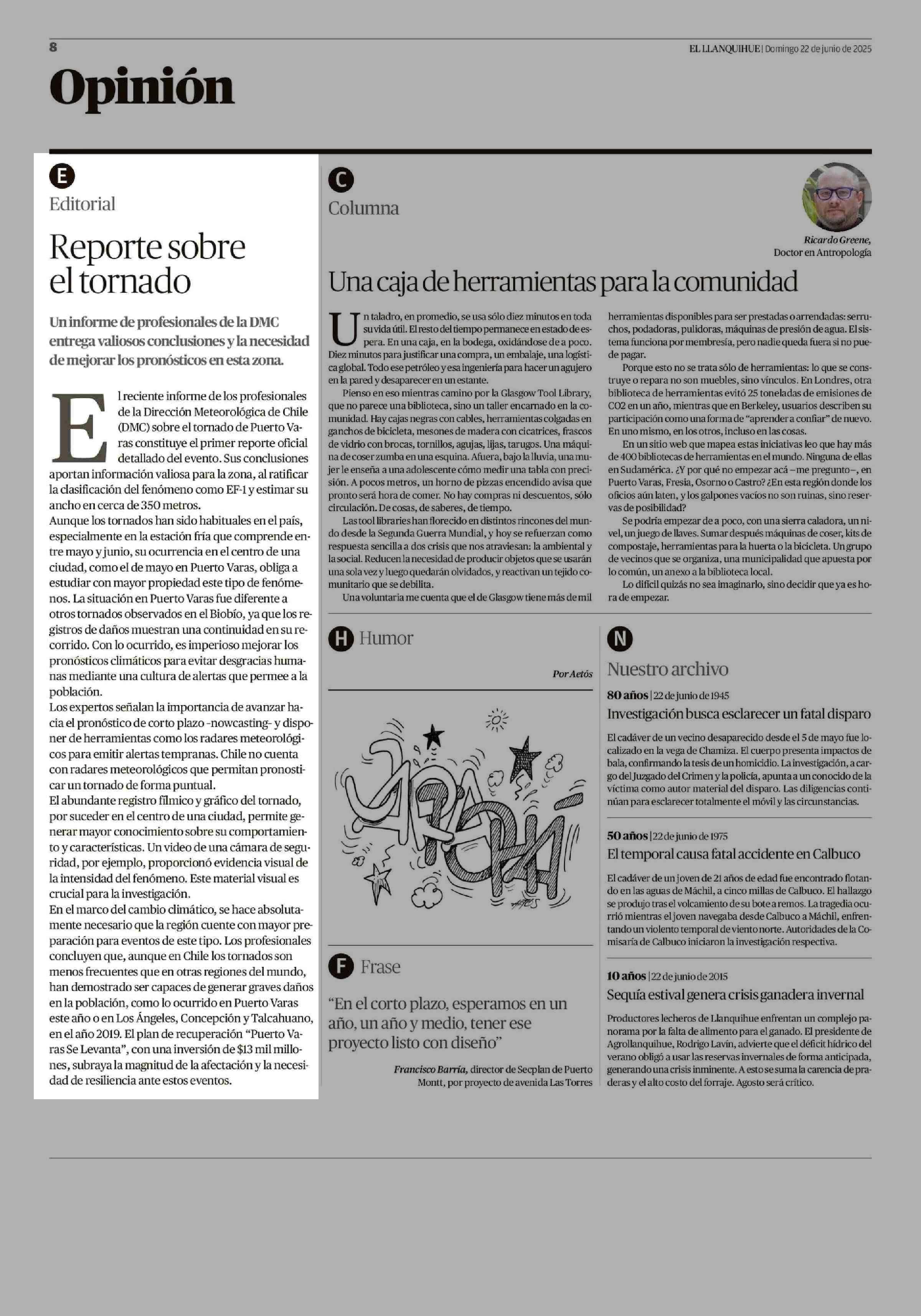 EDITORIAL: Reporte sobre el tornado 22-06-2025 El Llanquihue |
