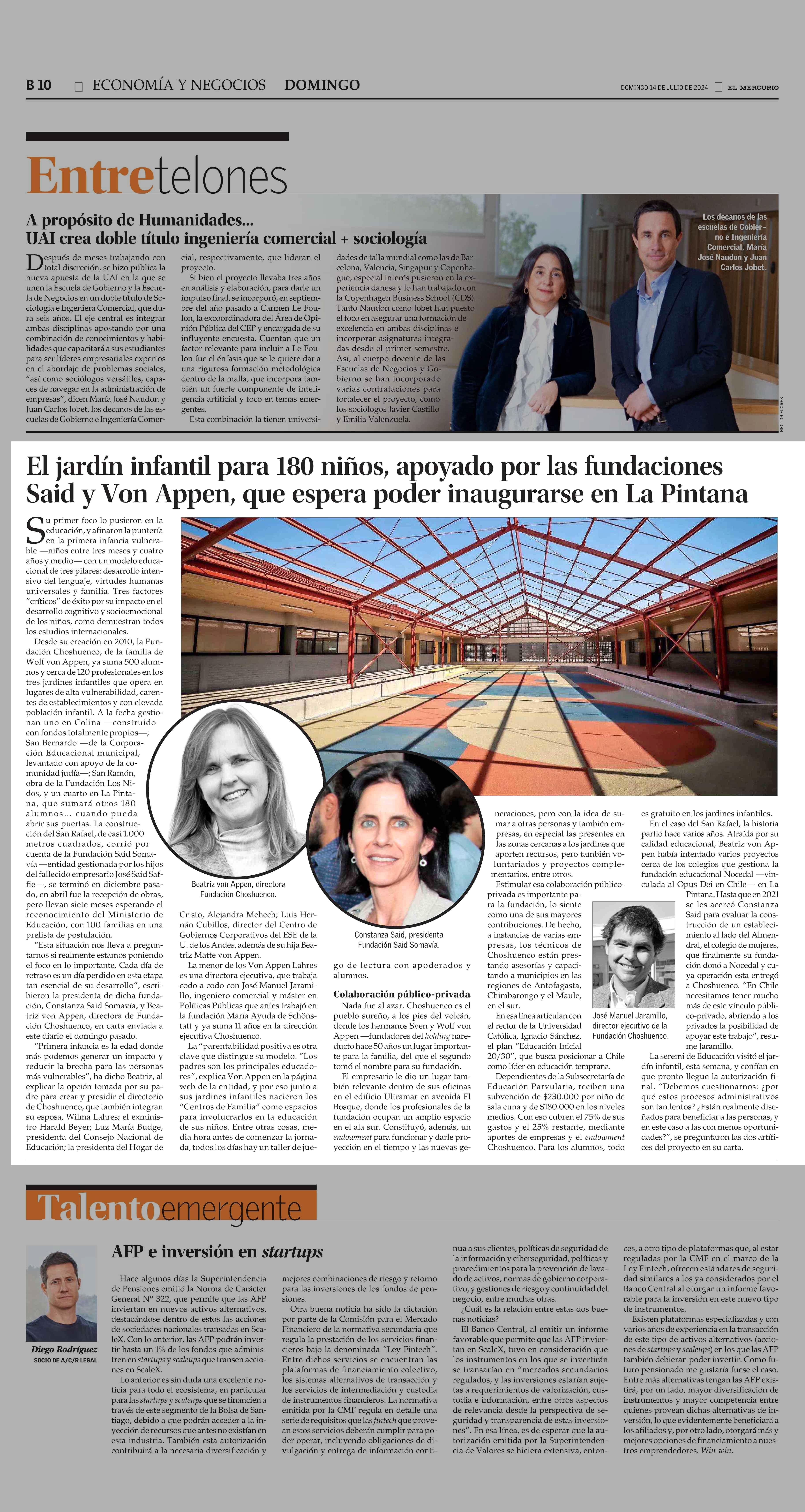 El jardín infantil para 180 niños, apoyado por las fundaciones Said y Von Appen, que espera poder inaugurarse en La Pintana 14-07-2024 El Mercurio |