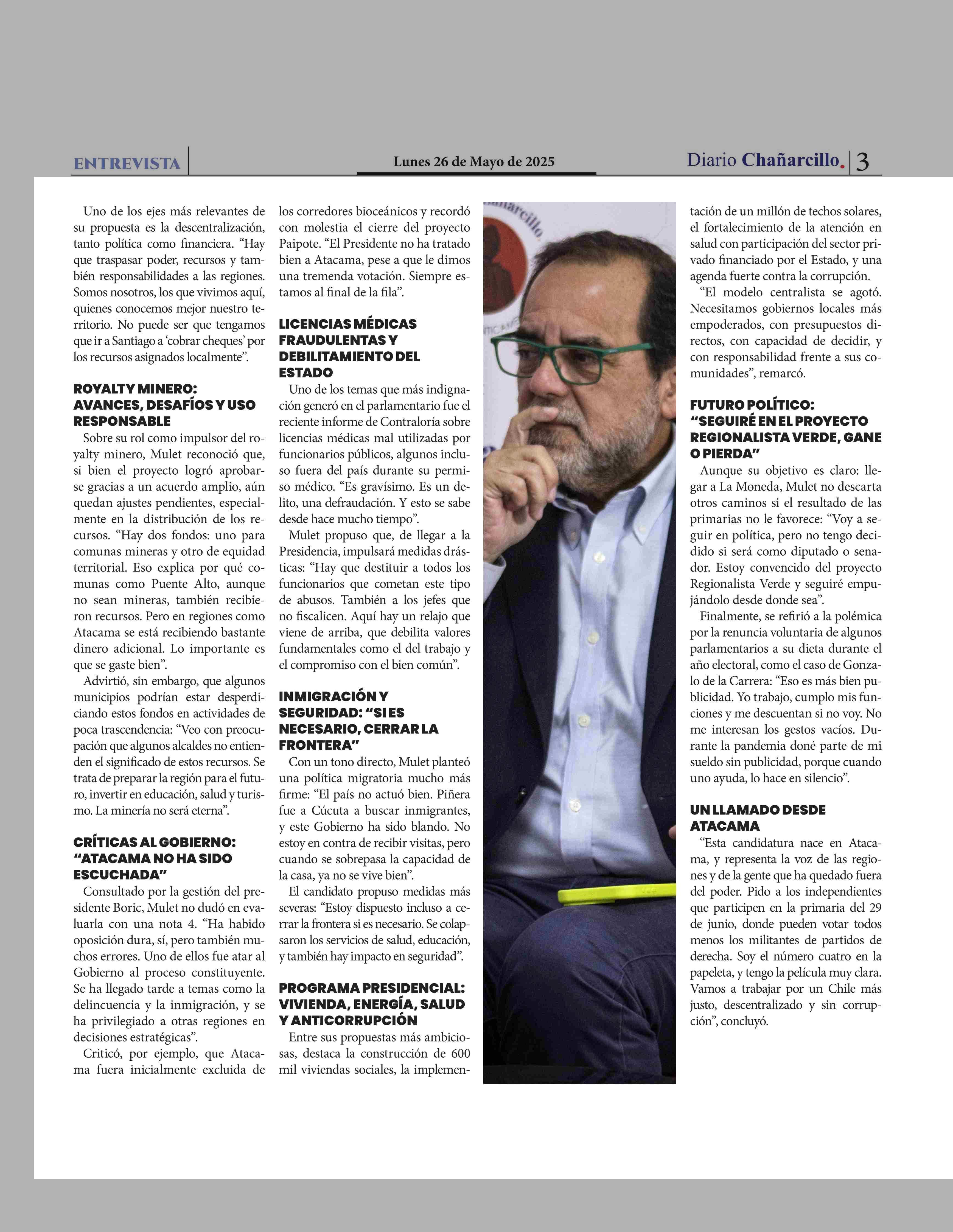 JAIME MULET DESDE ATACAMA: “Mi candidatura no es de continuidad, es de cambio” 26-05-2025 Diario Chañarcillo |