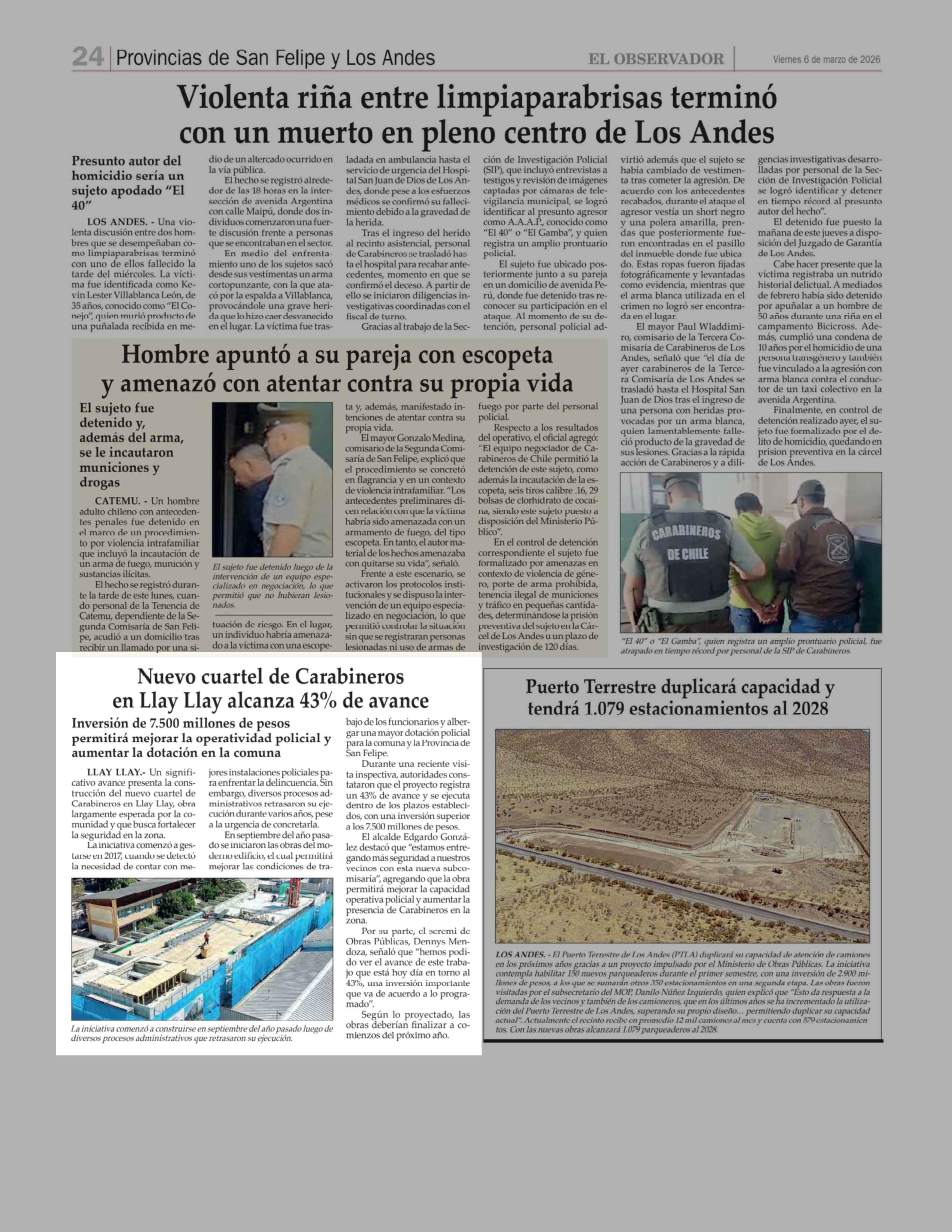 Nuevo cuartel de Carabineros en Llay Llay alcanza 43% de avance 06-03-2026 El Observador |