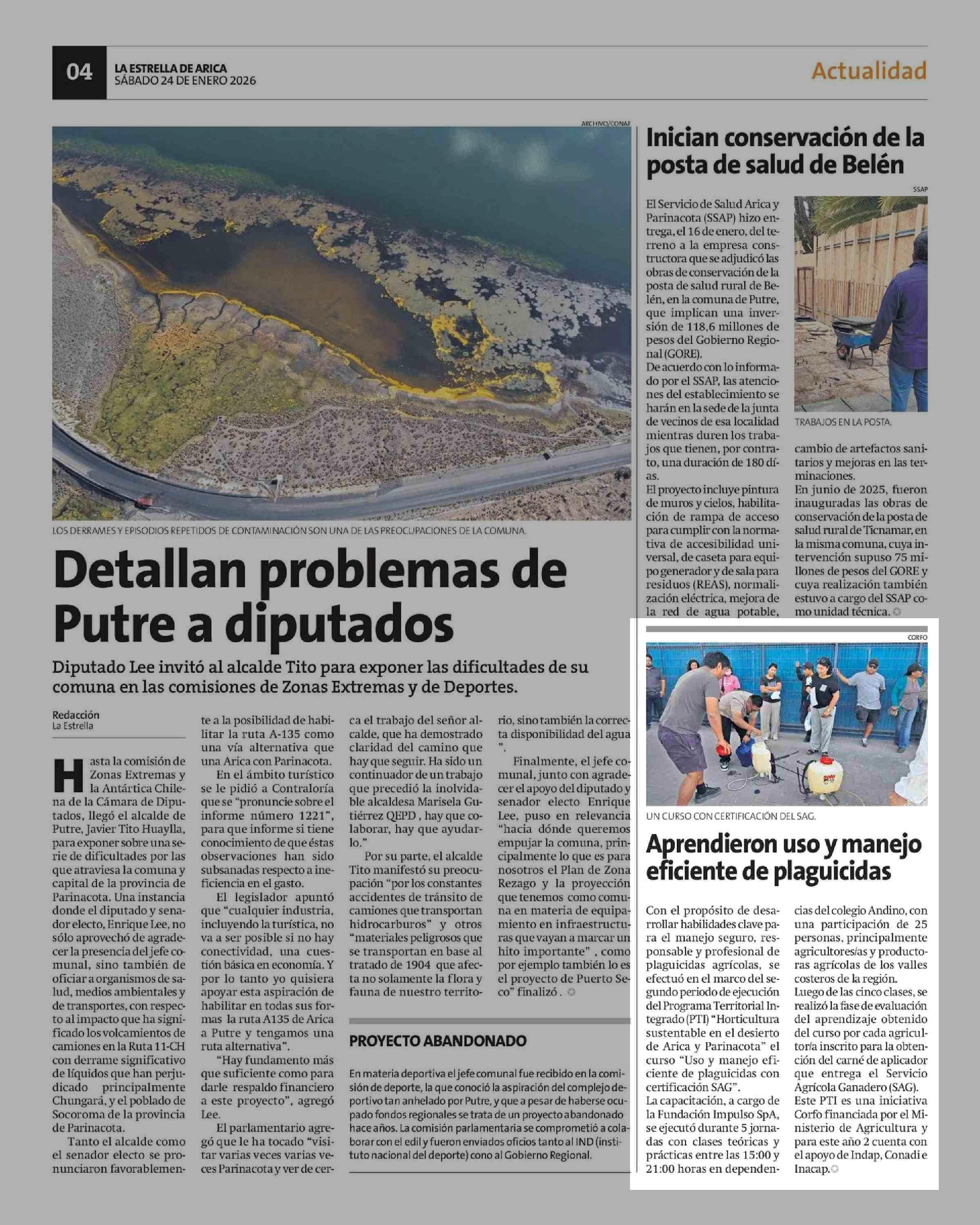 Aprendieron uso y manejo eficiente de plaguicidas 24-01-2026 La Estrella de Arica |