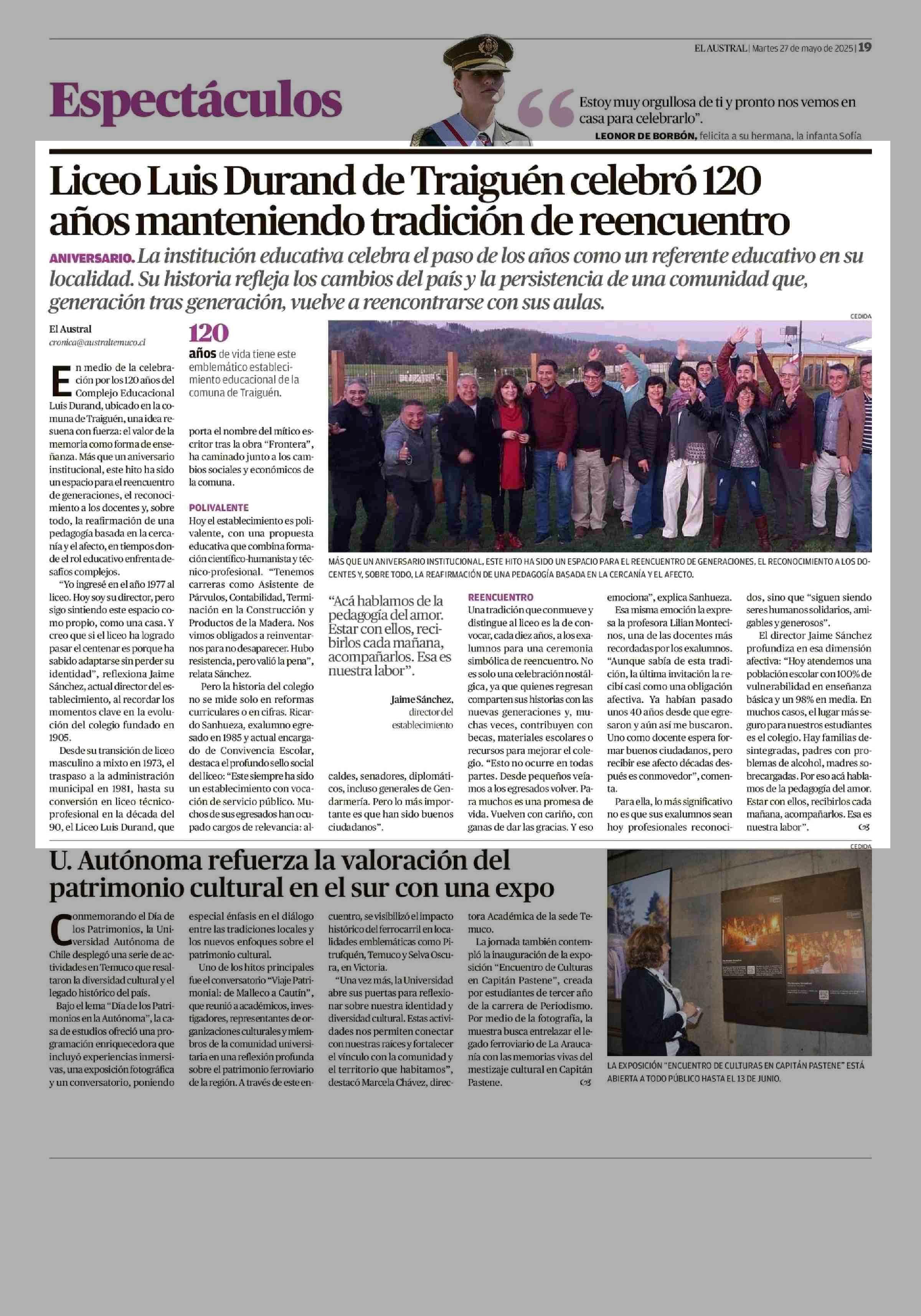Liceo Luis Durand de Traiguén celebró 120 años manteniendo tradición de reencuentro 27-05-2025 El Austral de la Araucanía |