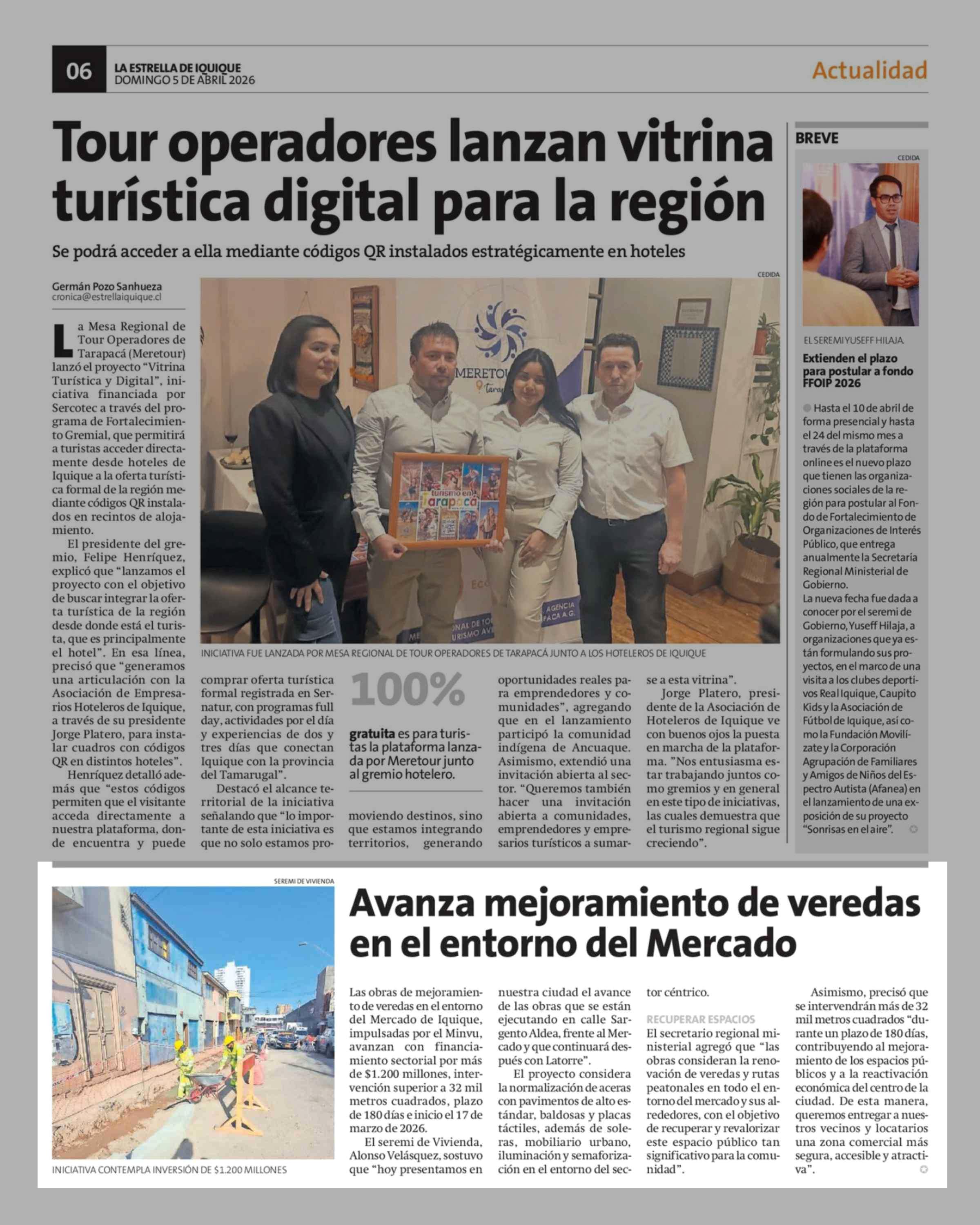 | Fecha: | 05-04-2026 | Sector: | Noticia general | Región: | Región de Tarapacá |