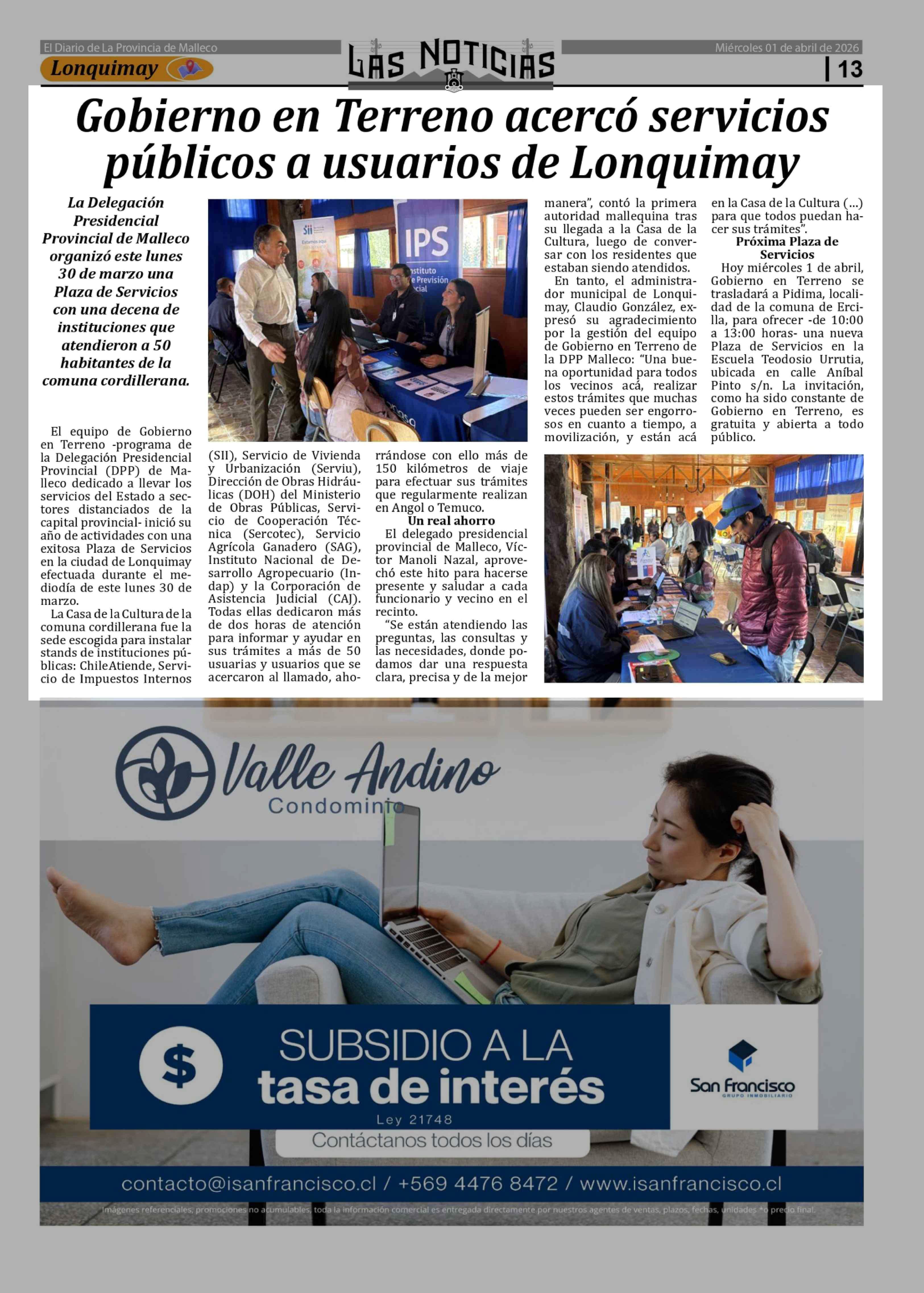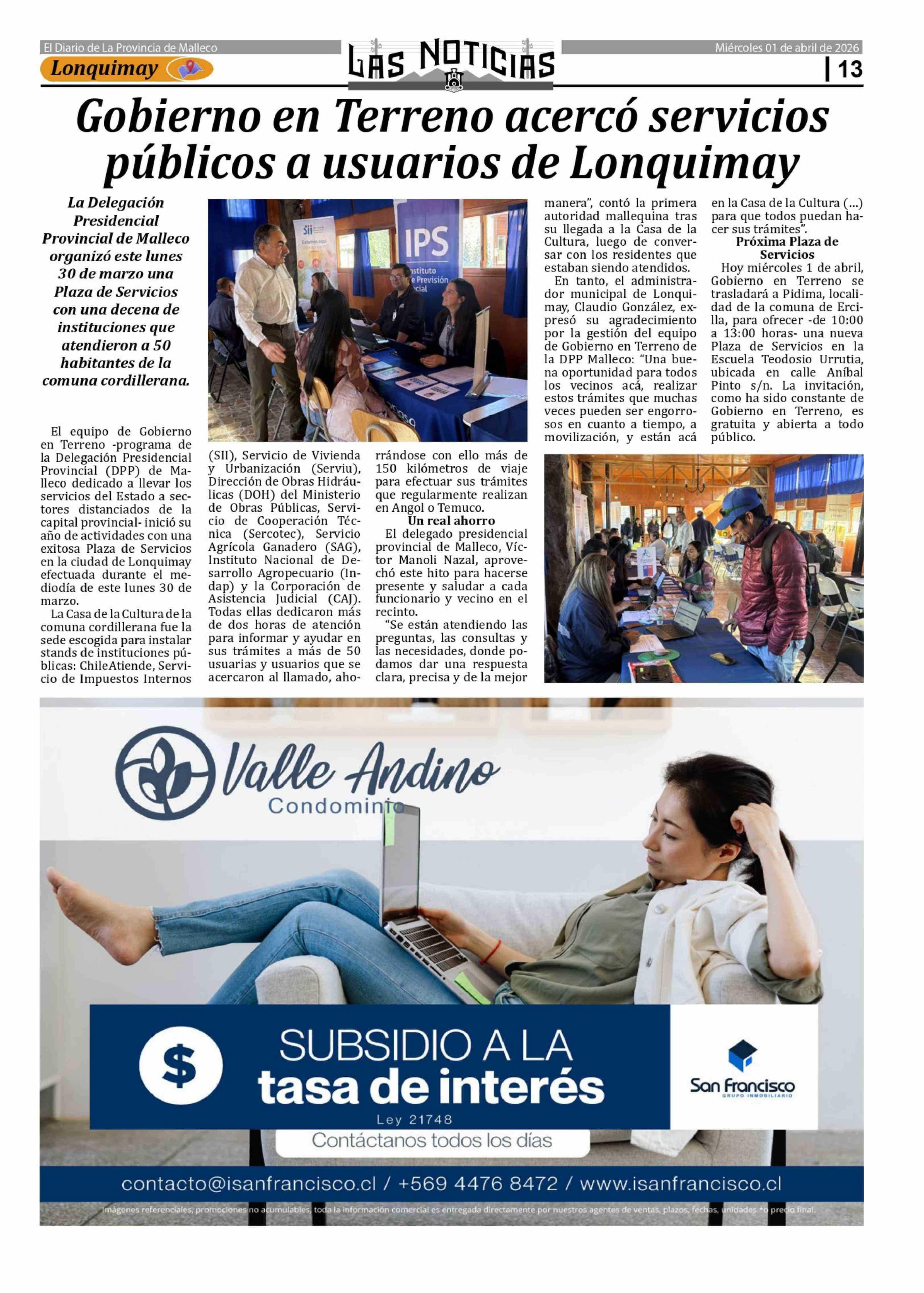 Gobierno en Terreno acercó servicios públicos a usuarios de Lonquimay 01-04-2026 Las Noticias |