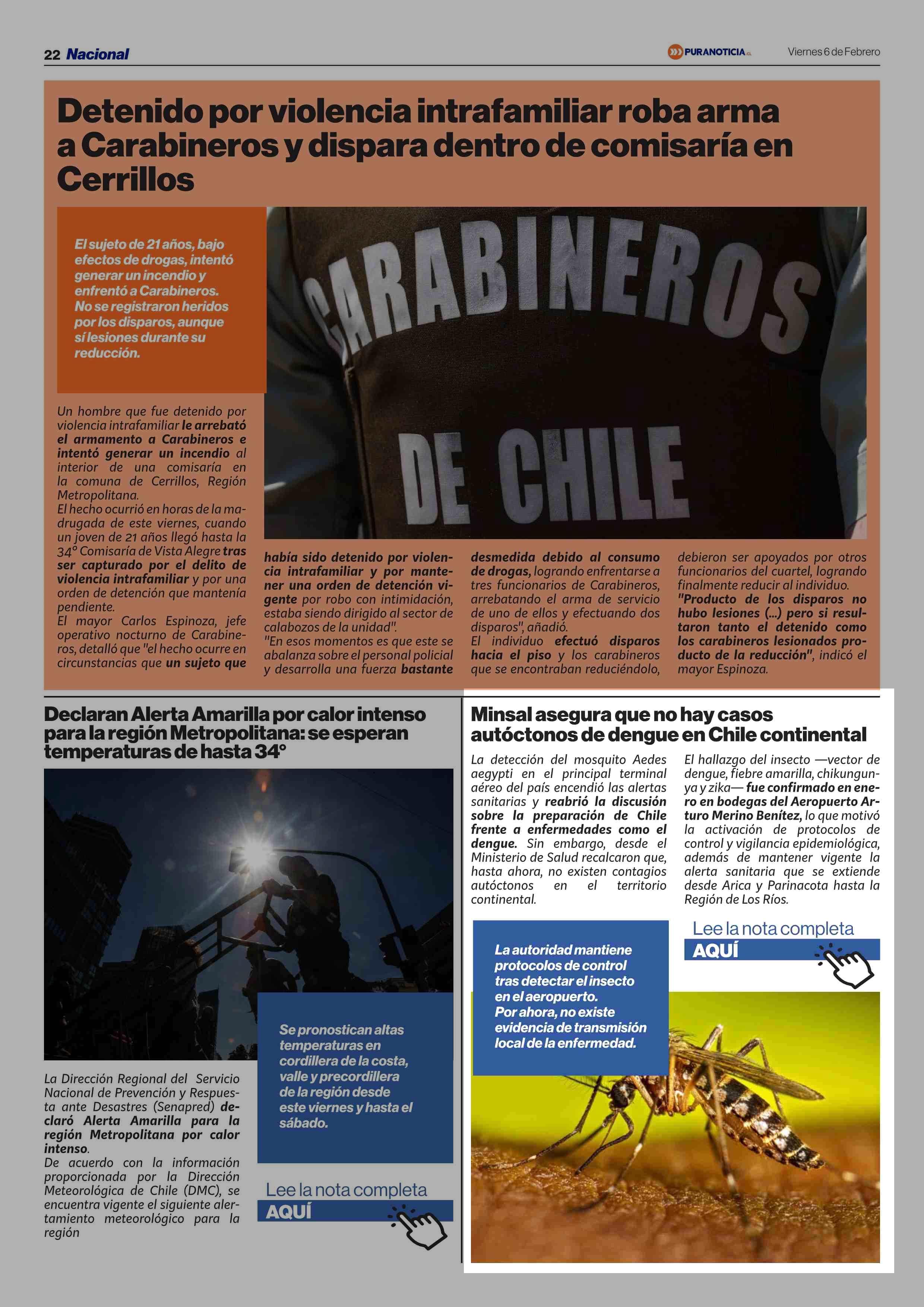 Minsal asegura que no hay casos autóctonos de dengue en Chile continental 06-02-2026 Puranoticia.cl |