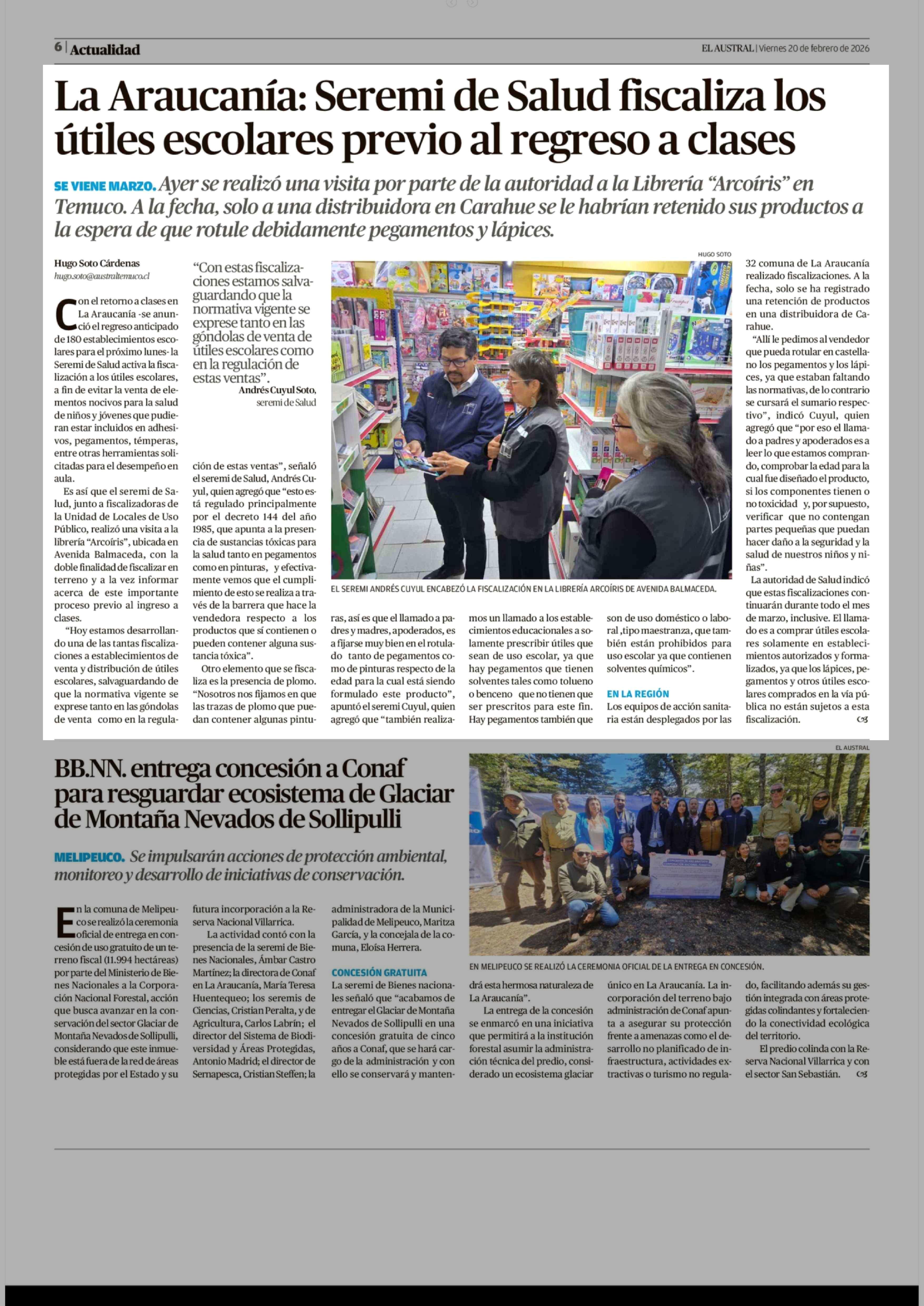 Fecha: 20-02-2026 Sector: Noticia general Región: Región de la Araucanía