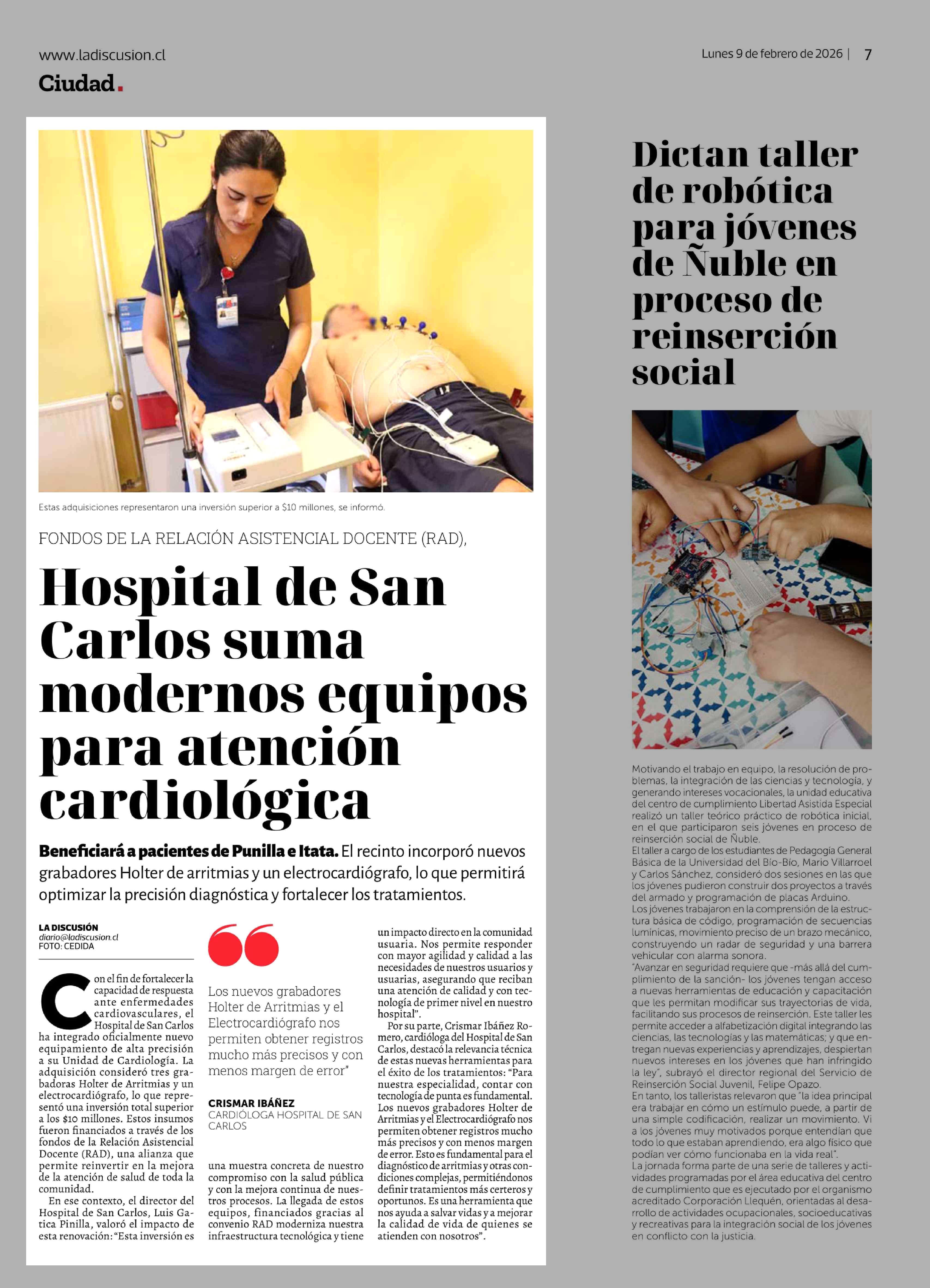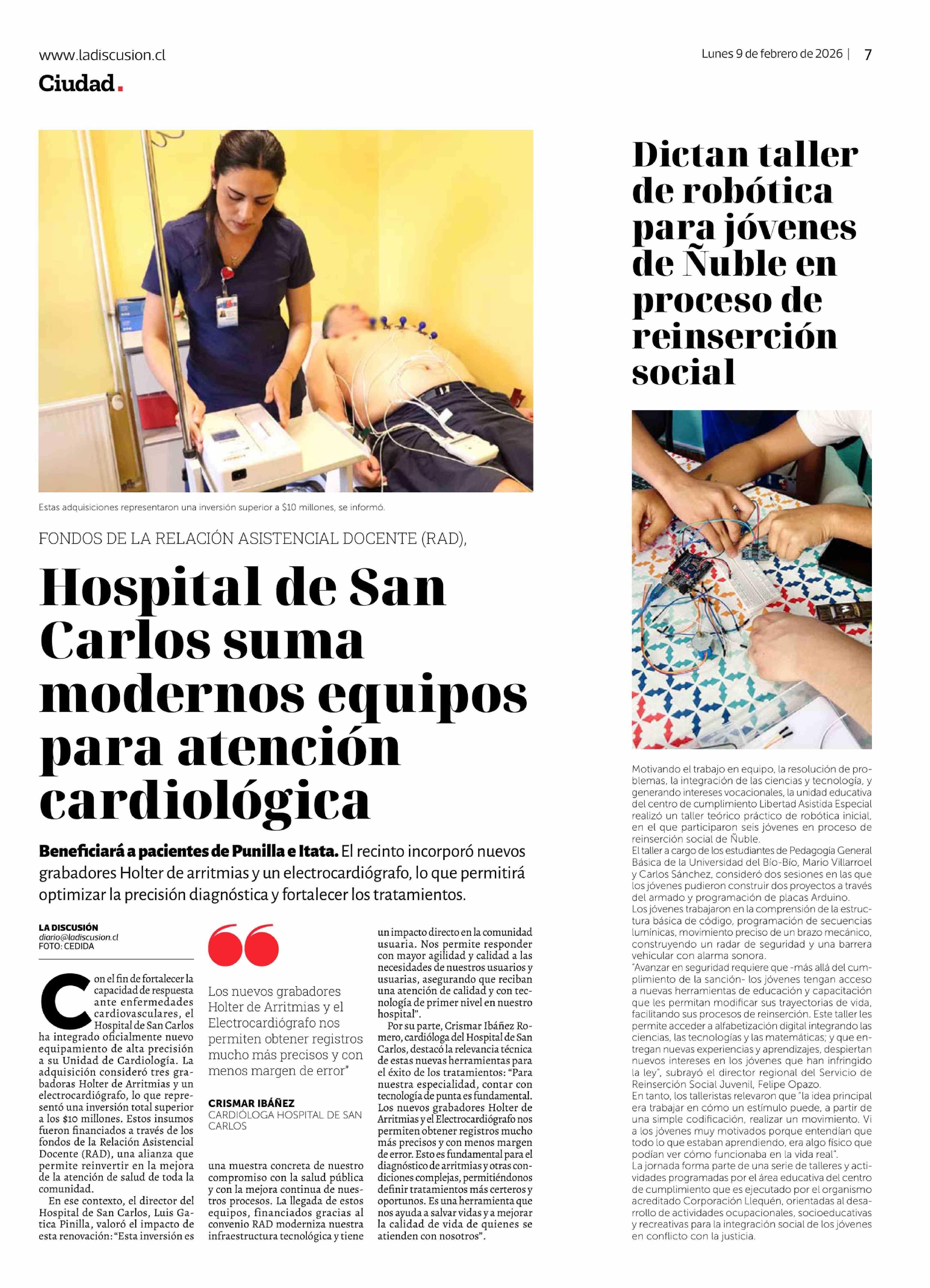 Hospital de San Carlos suma modernos equipos para atención cardiológica 09-02-2026 La Discusión |