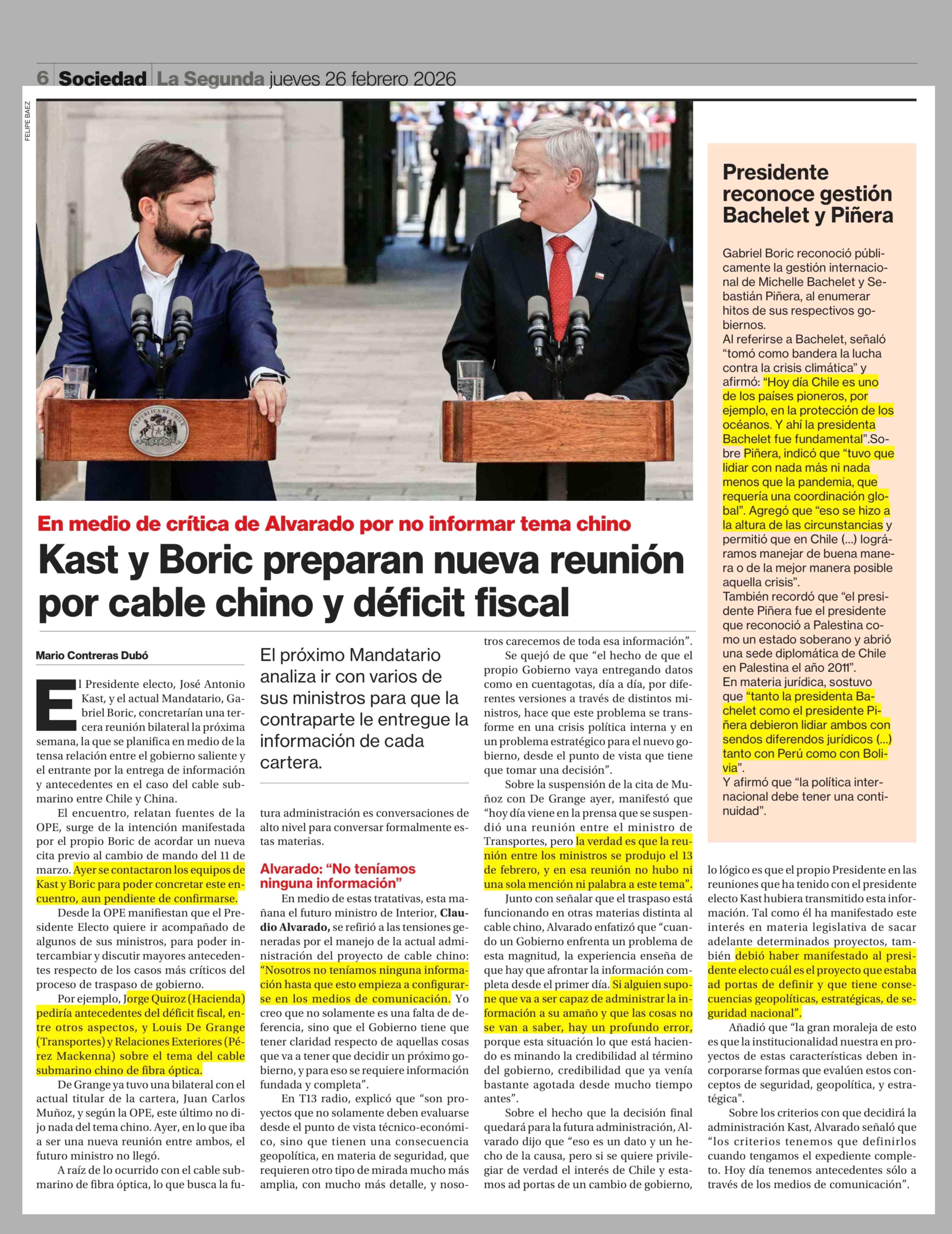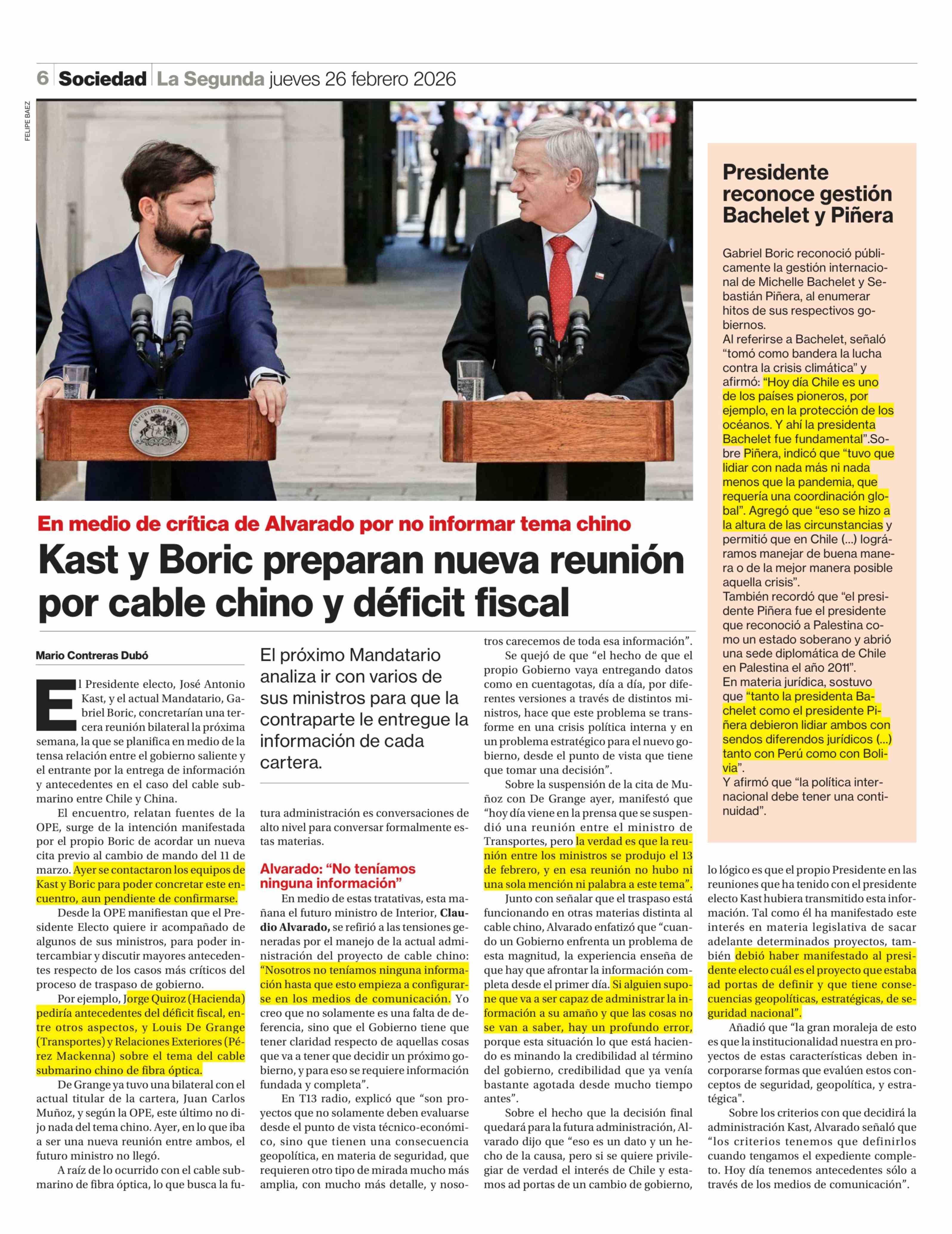 Título: Kast y Boric preparan nueva reunión por cable chino y déficit fiscal