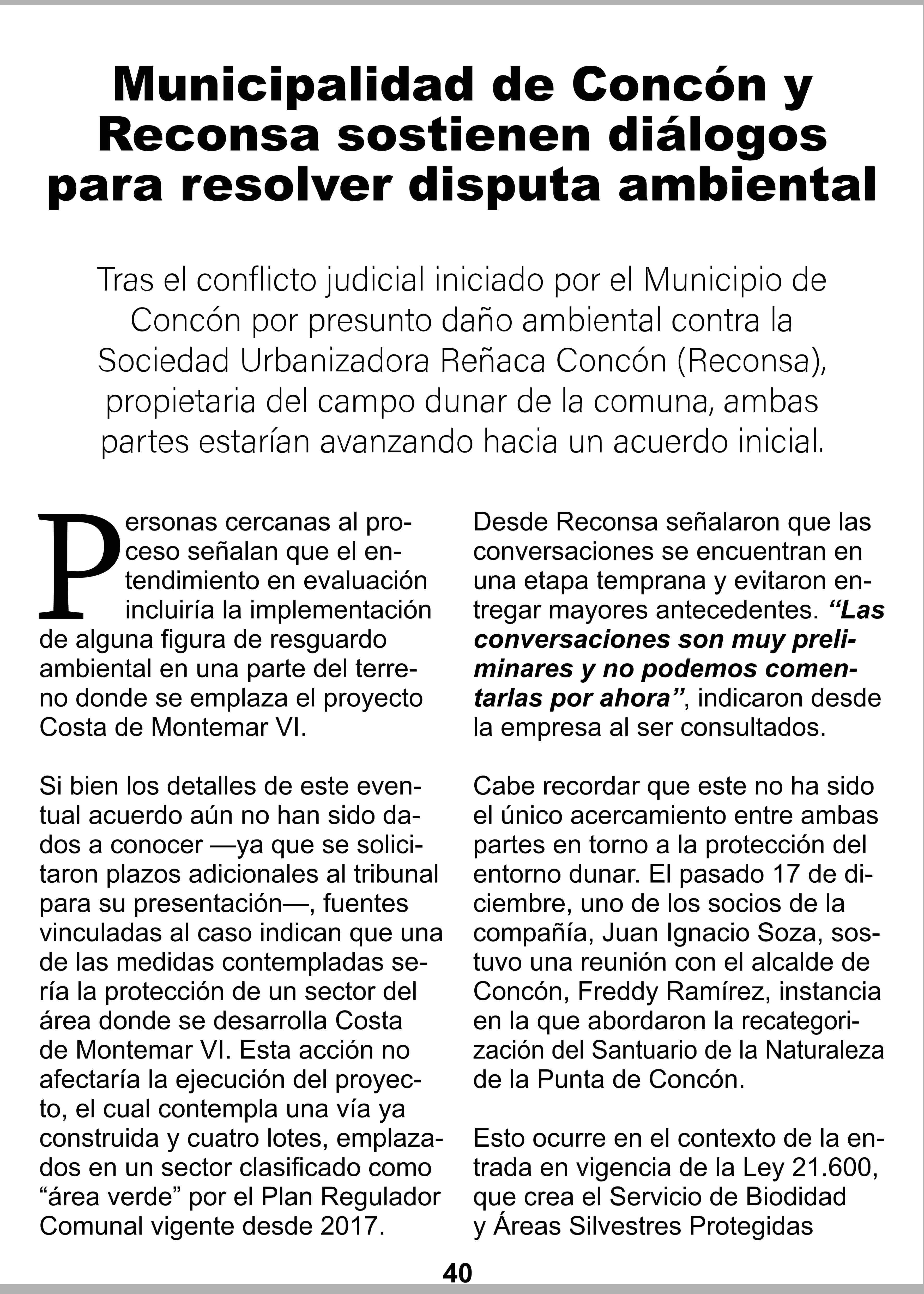 Título: Municipalidad de Concón y Reconsa sostienen diálogos para resolver disputa ambiental