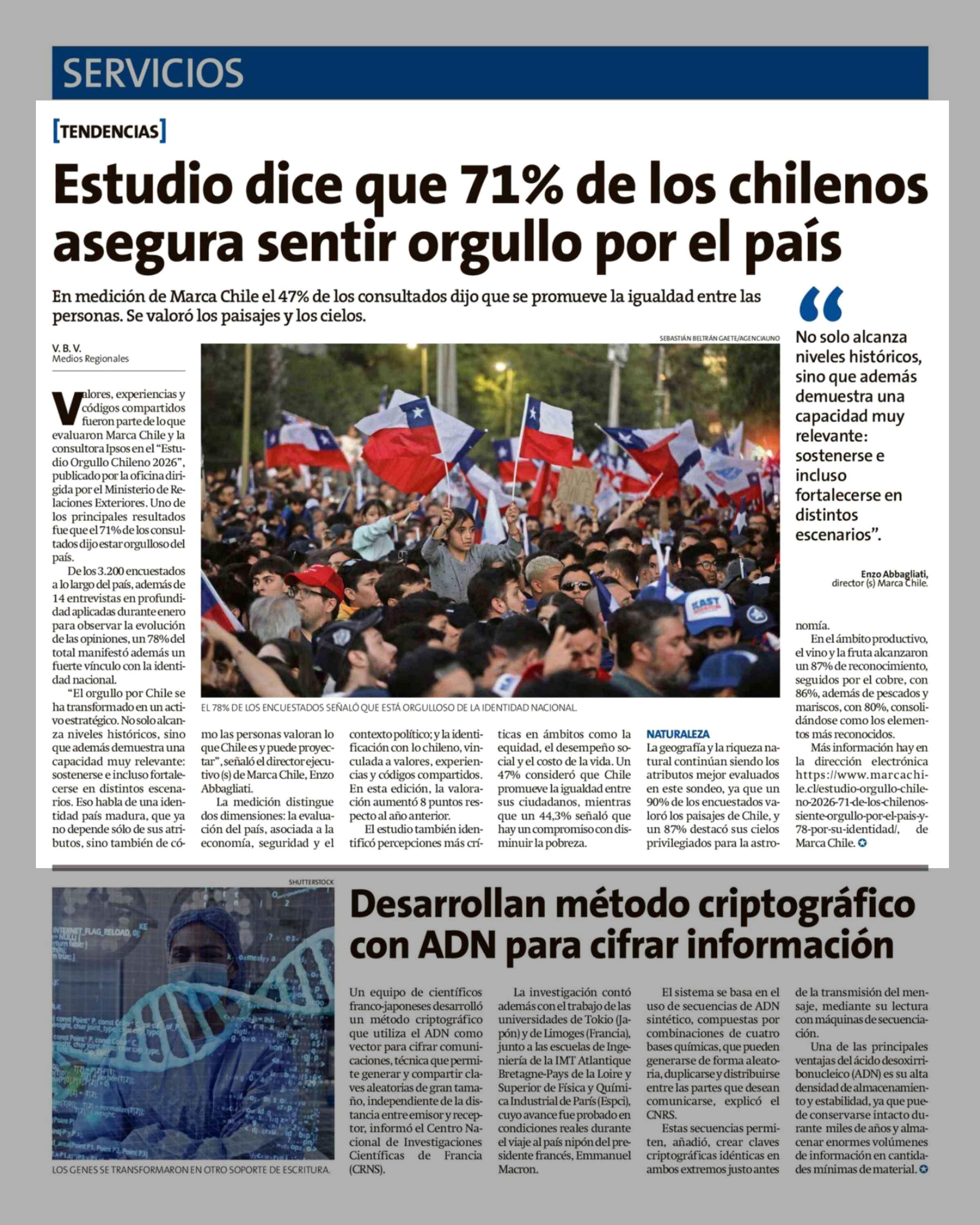 Título: Estudio dice que 71% de los chilenos asegura sentir orgullo por el país