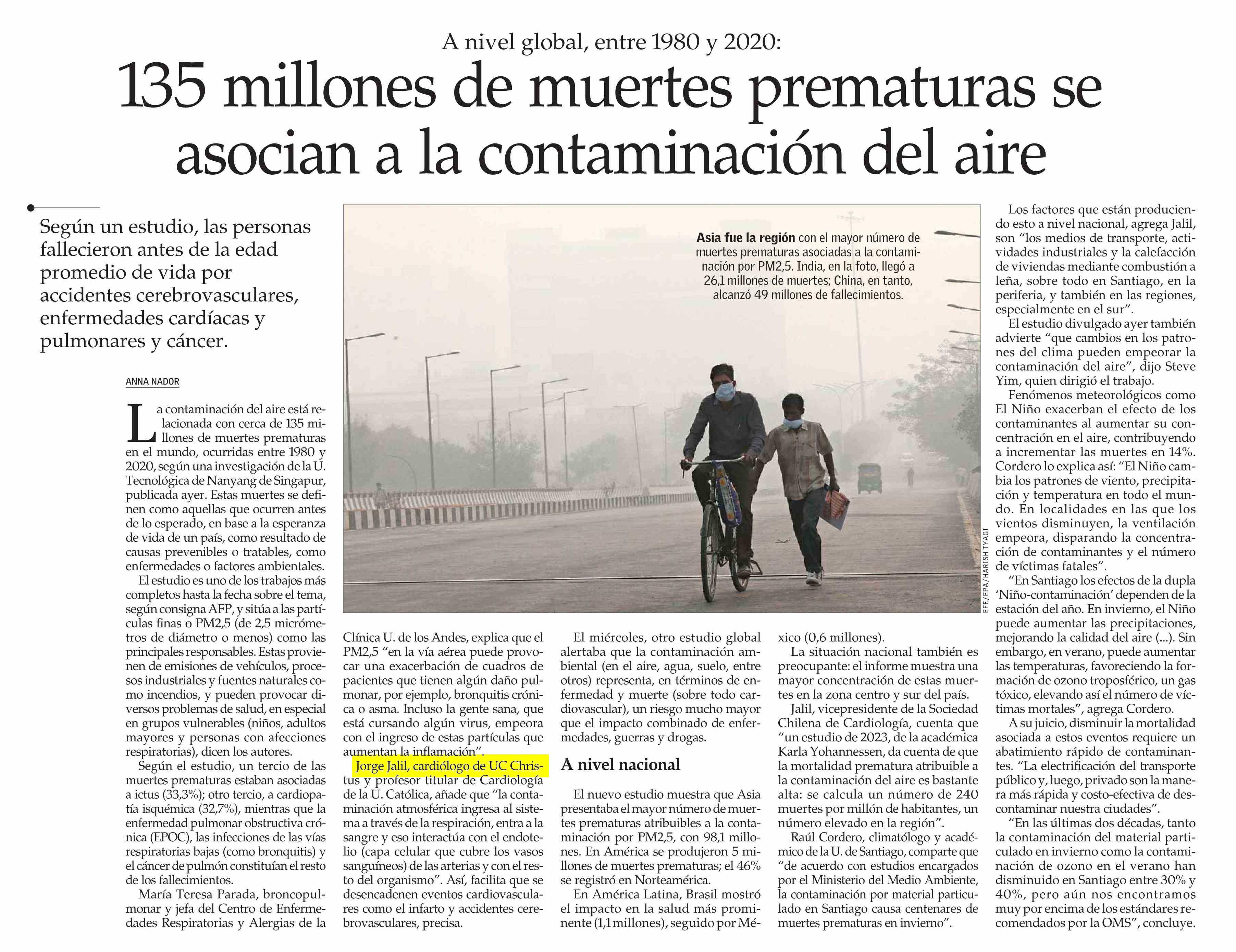 135 millones de muertes prematuras se asocian a la contaminación del aire 11-06-2024 El Mercurio |