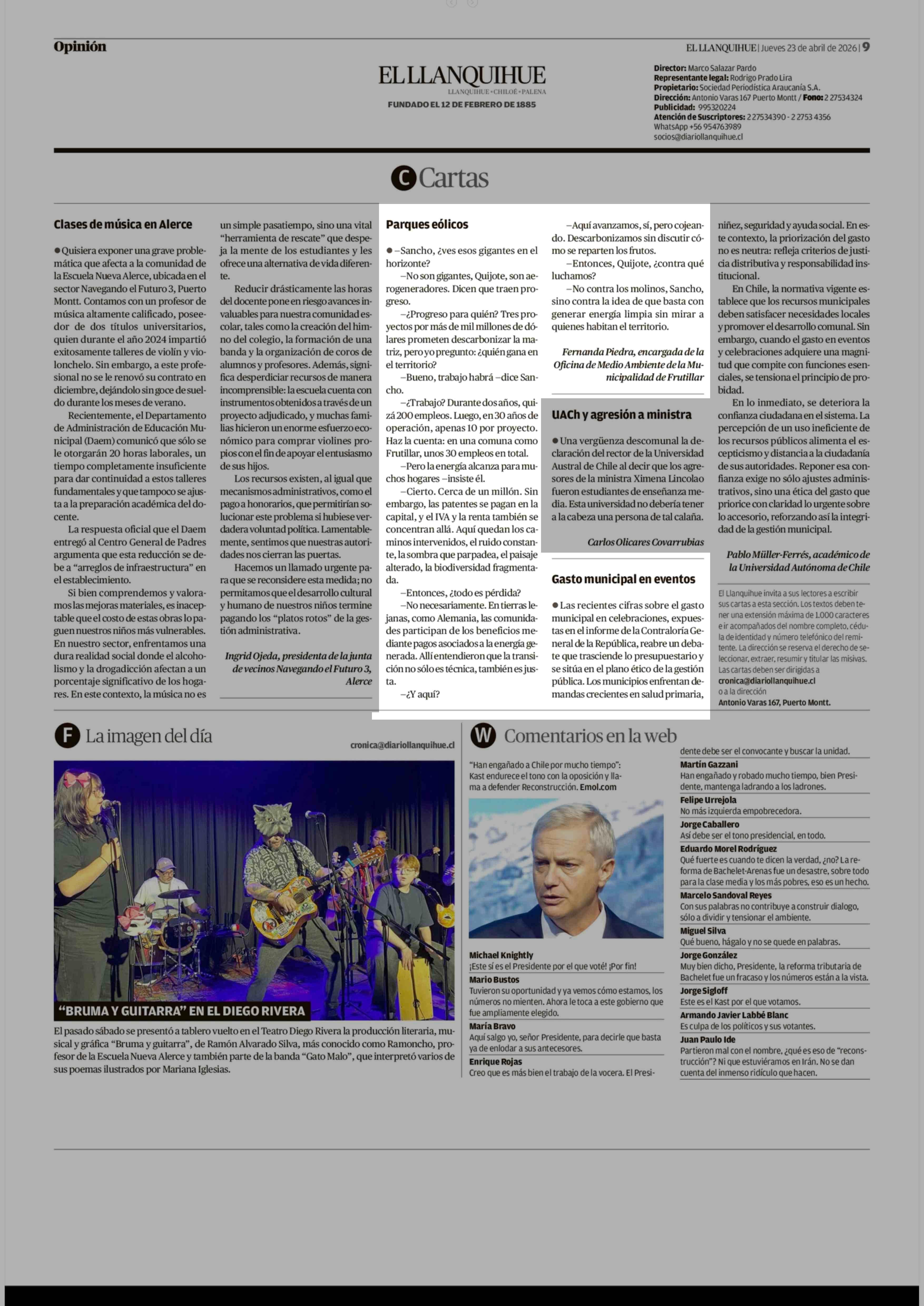 CARTAS: Parques eólicos 23-04-2026 El Llanquihue |