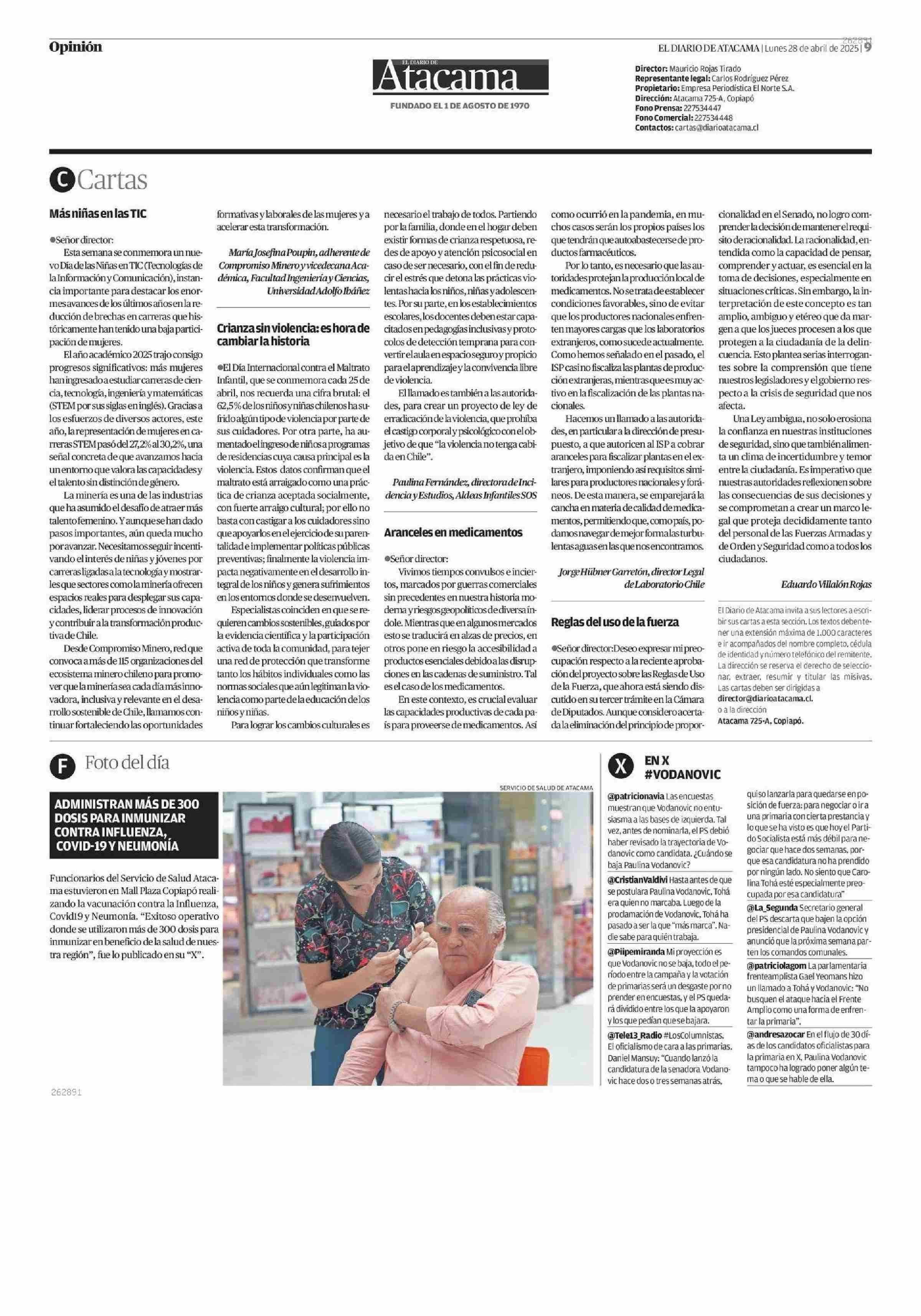 Aranceles en medicamentos 28-04-2025 El Diario de Atacama |