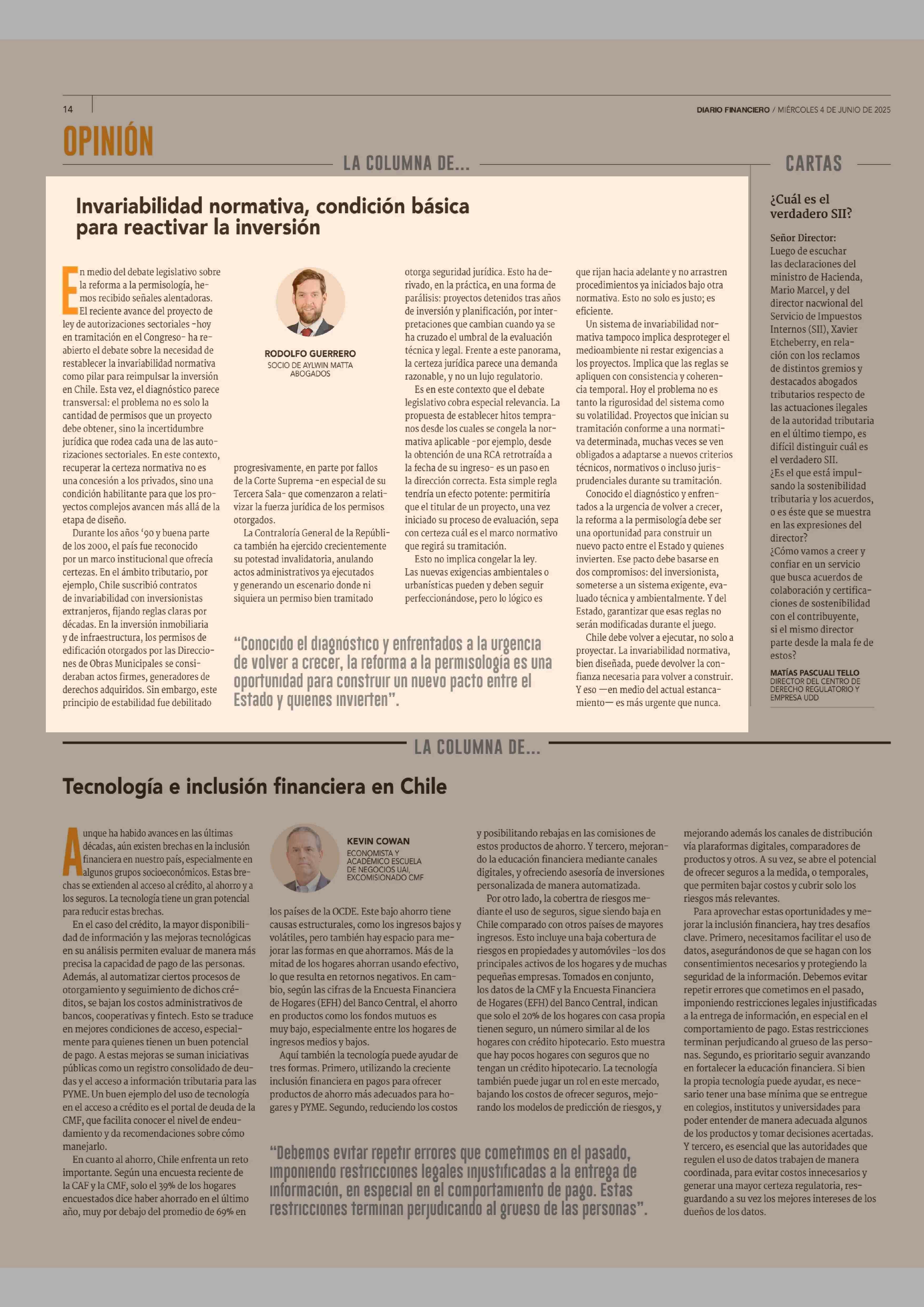 Fuente: Diario Financiero (Diario Financiero) Página(s): 14