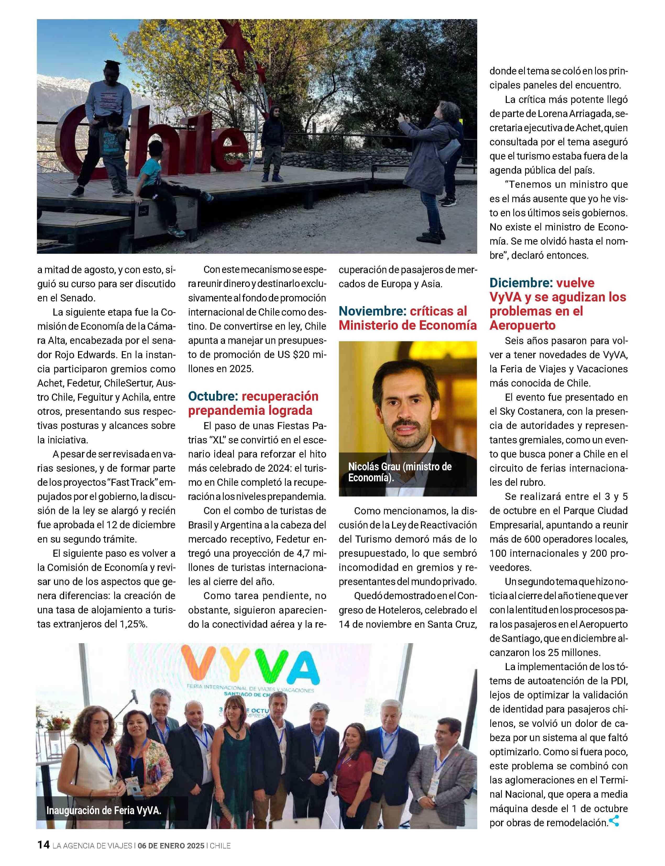 Lo que dejó 2024, el año definitivo de la recuperación del turismo en Chile 06-01-2025 Revista La Agencia de Viajes |