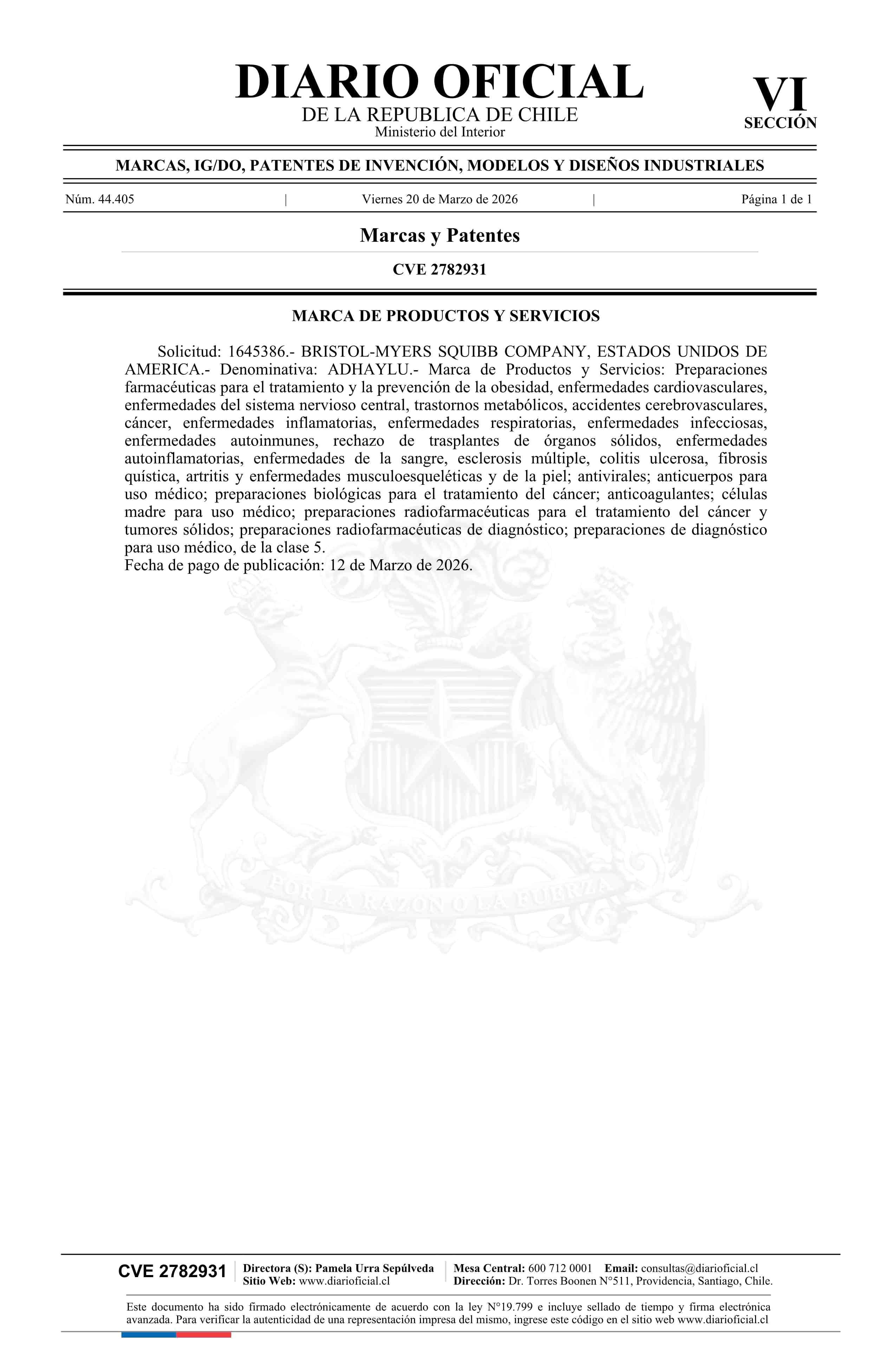 Solicitud número 1645386.- ADHAYLU 20-03-2026 Diario Oficial Edición Electrónica |