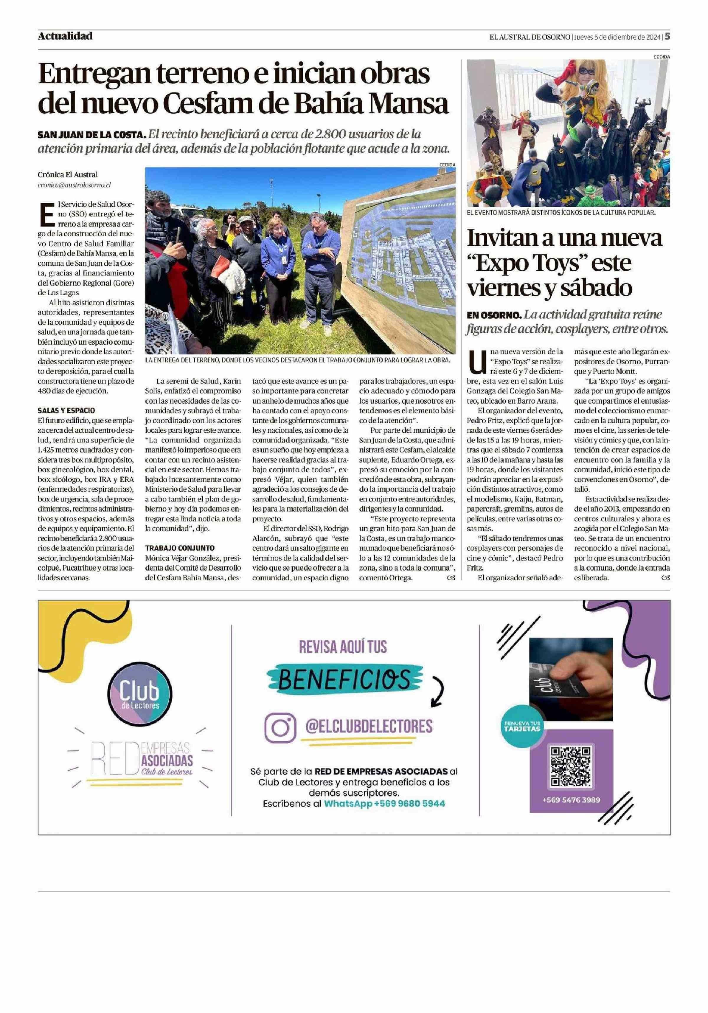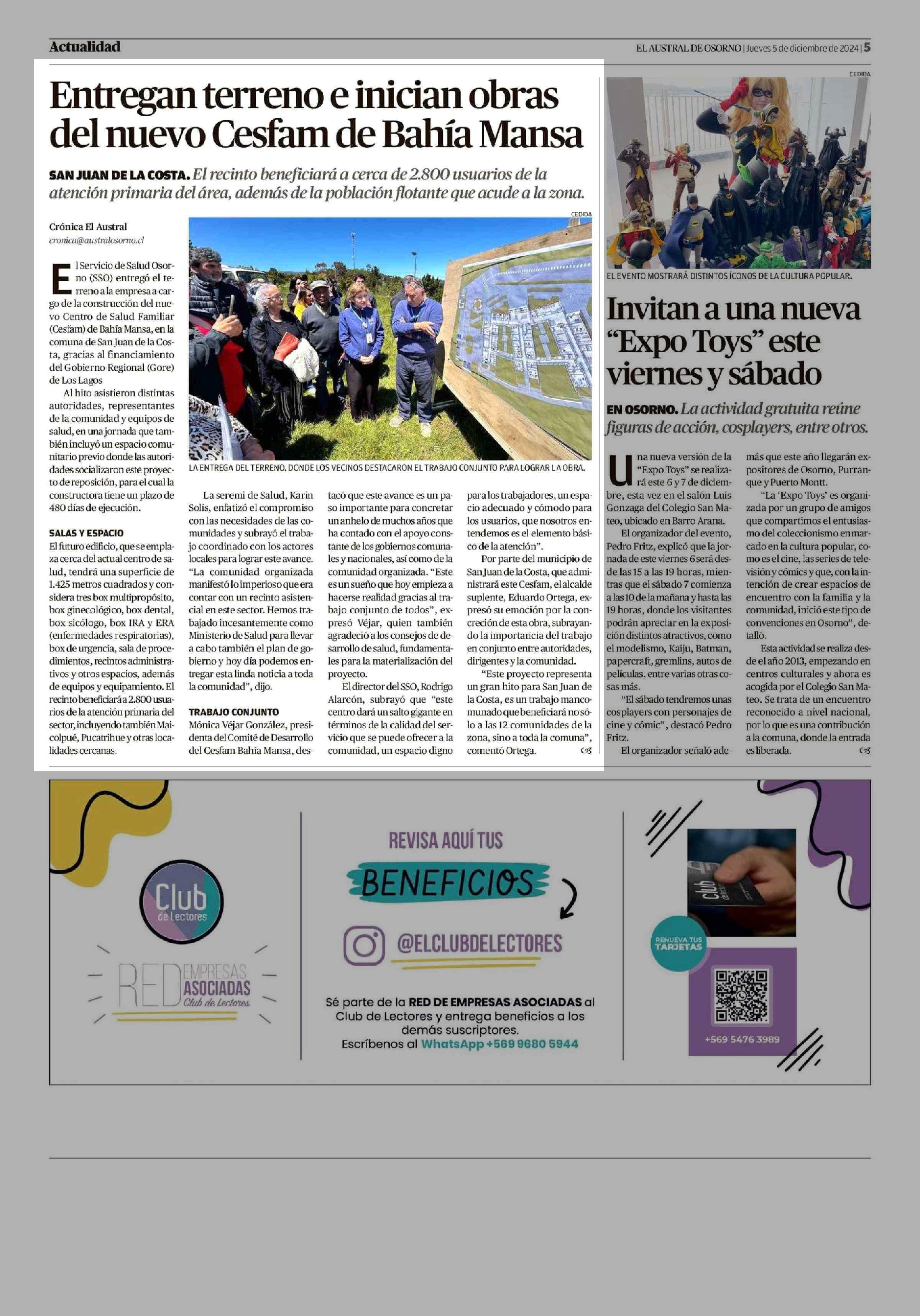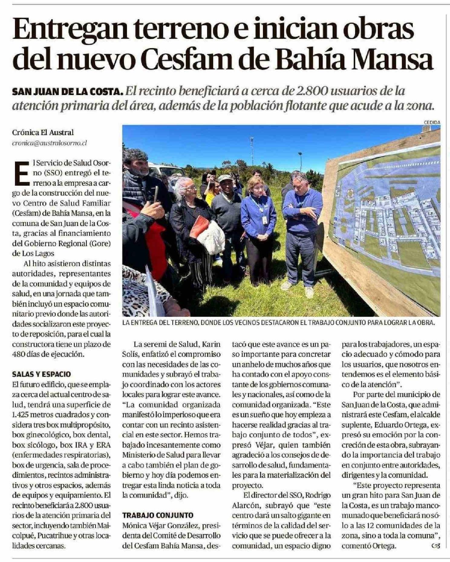 Entregan terreno e inician obras del nuevo Cesfam de Bahía Mansa 05-12-2024 El Austral de Osorno |