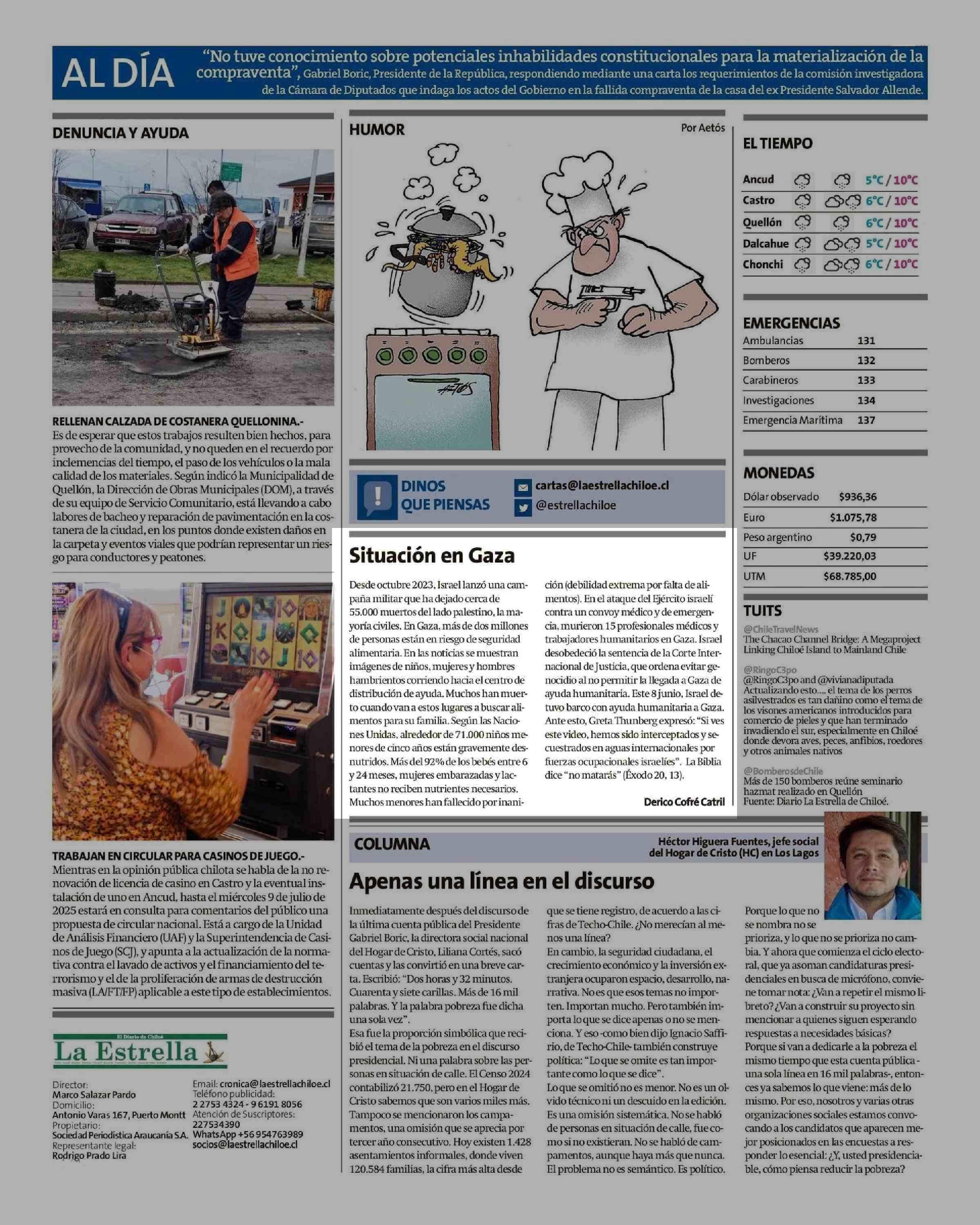 Cartas: Situación en Gaza 12-06-2025 La Estrella de Chiloé |