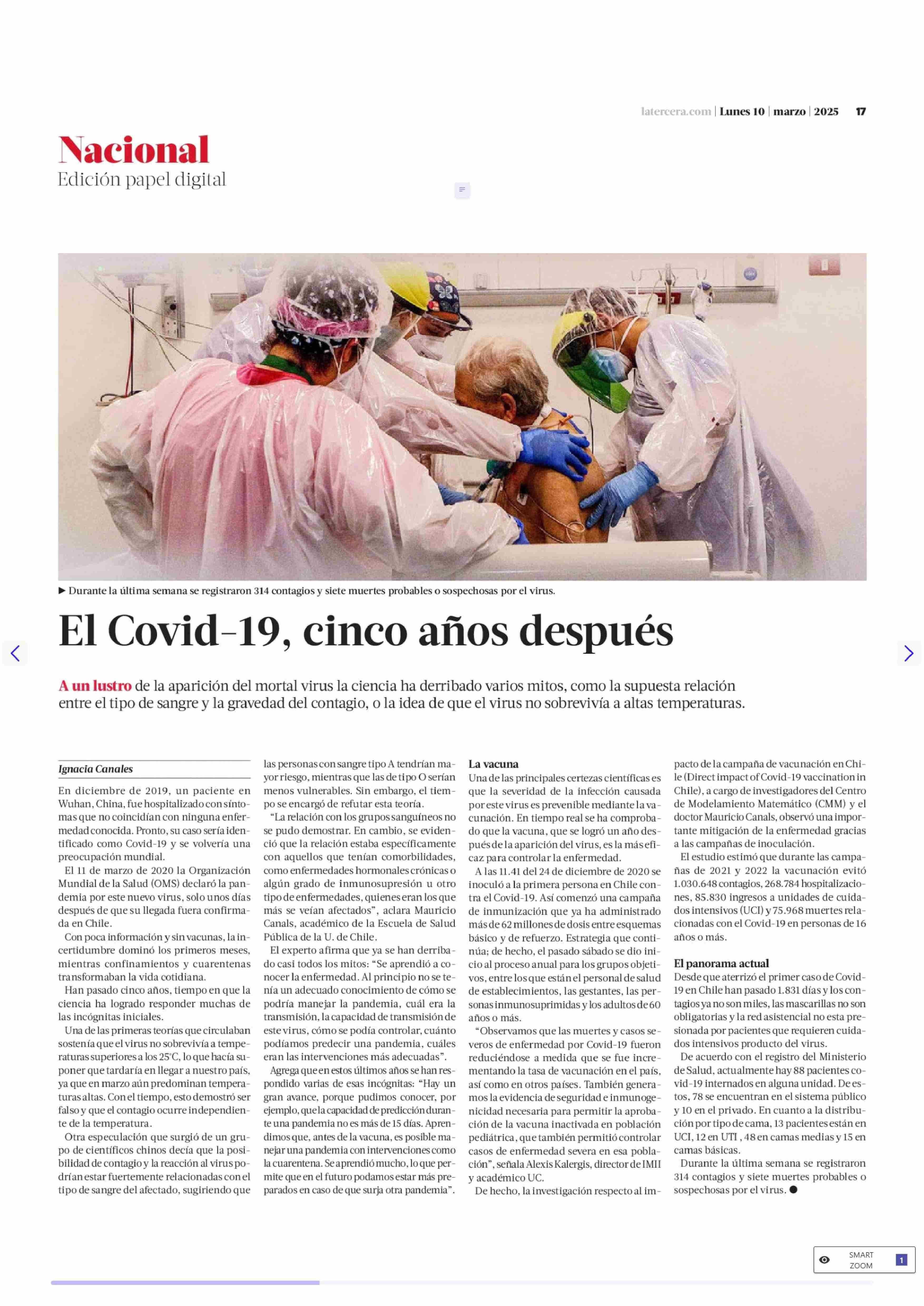 El Covid-19, cinco años después 10-03-2025 La Tercera |