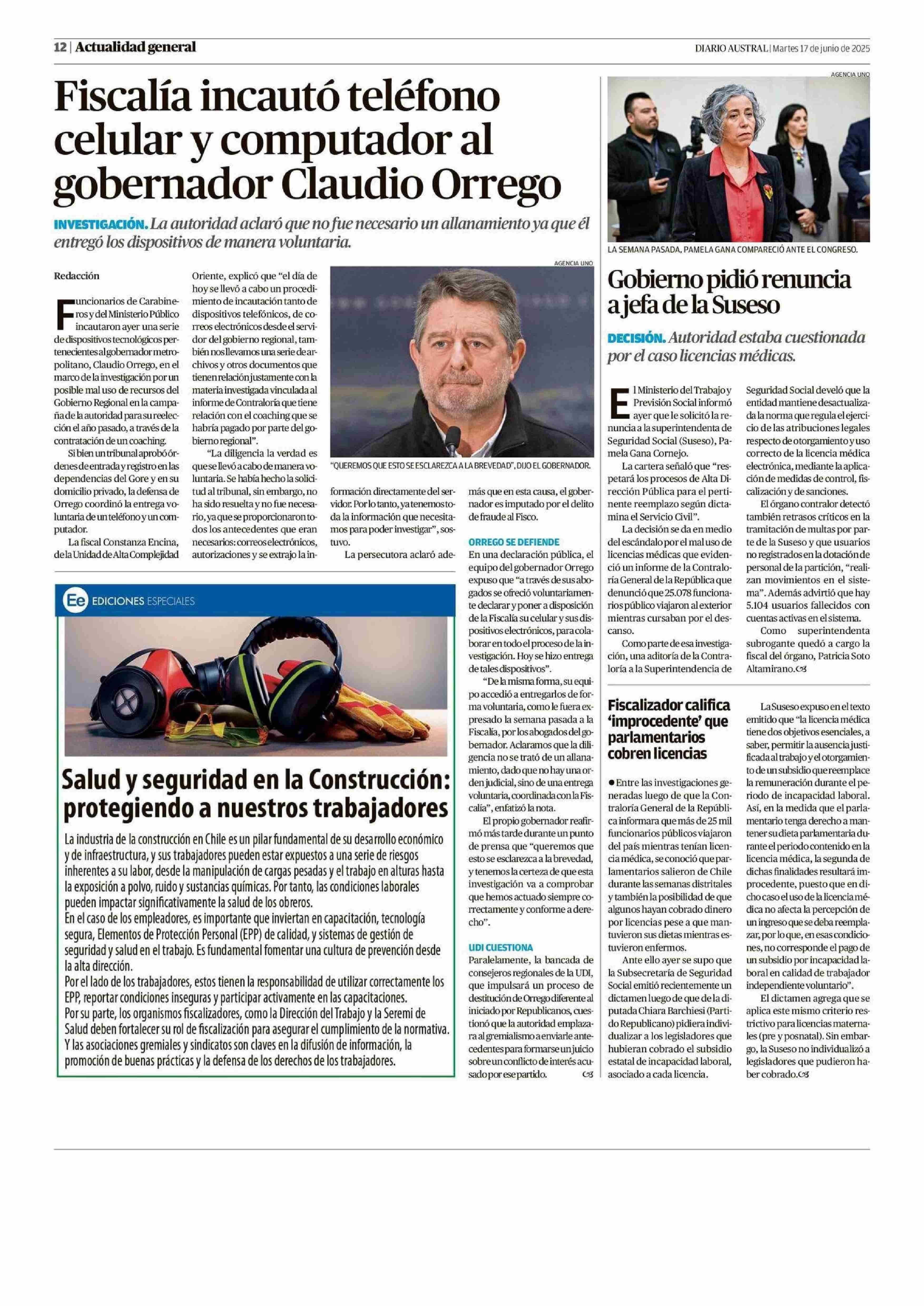 Gobierno pidió renuncia ajefa dela Suseso 17-06-2025 Diario Austral Región de Los Ríos |