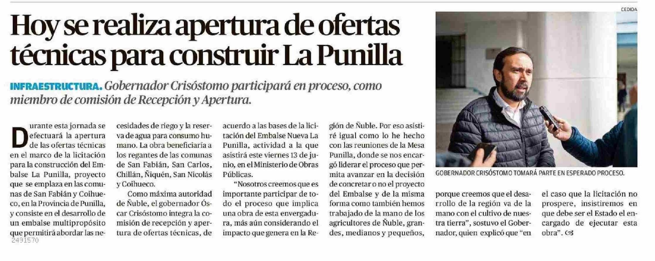 Hoy se realiza apertura de ofertas técnicas para construir La Punilla 13-06-2025 Crónica de Chillán |