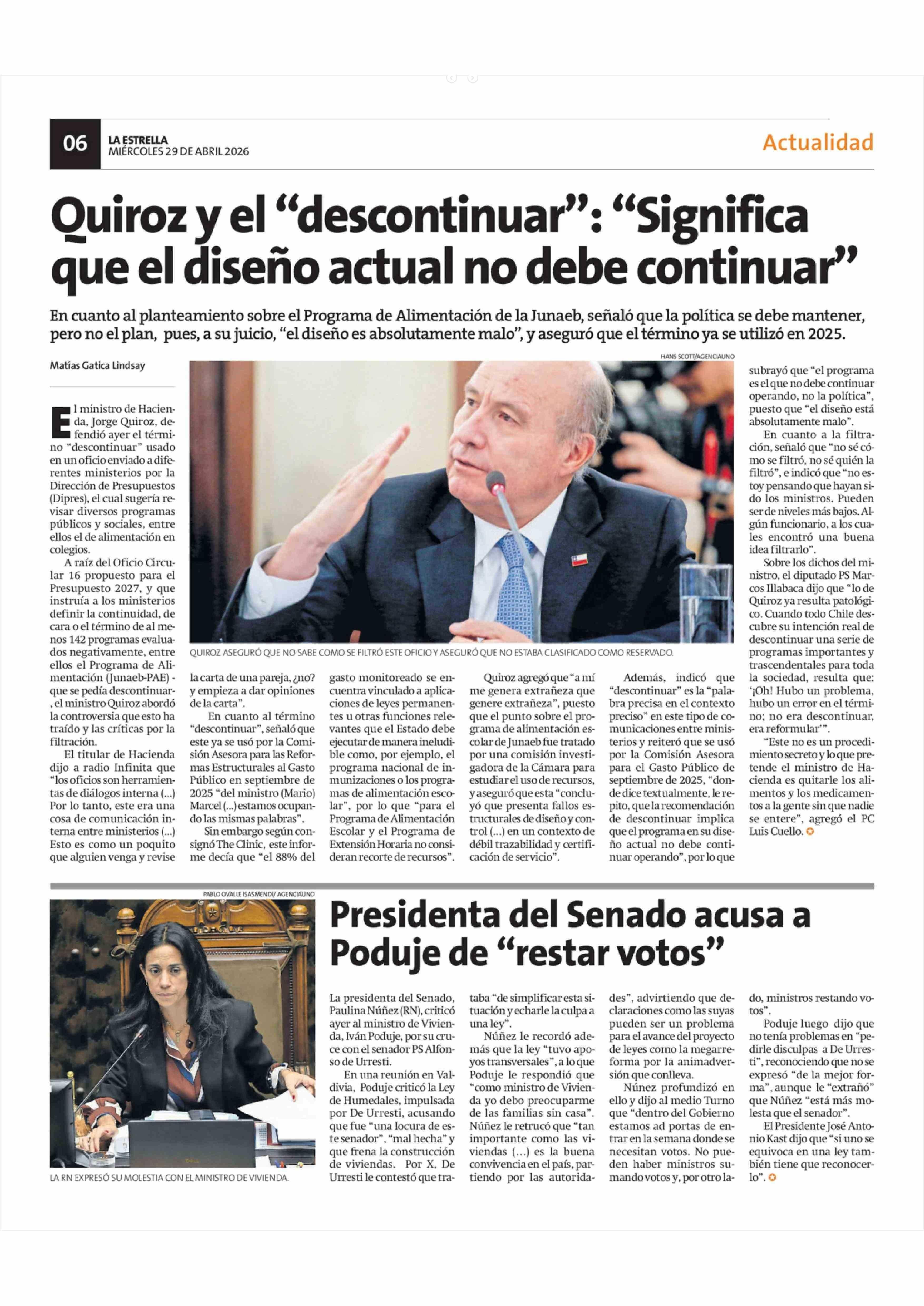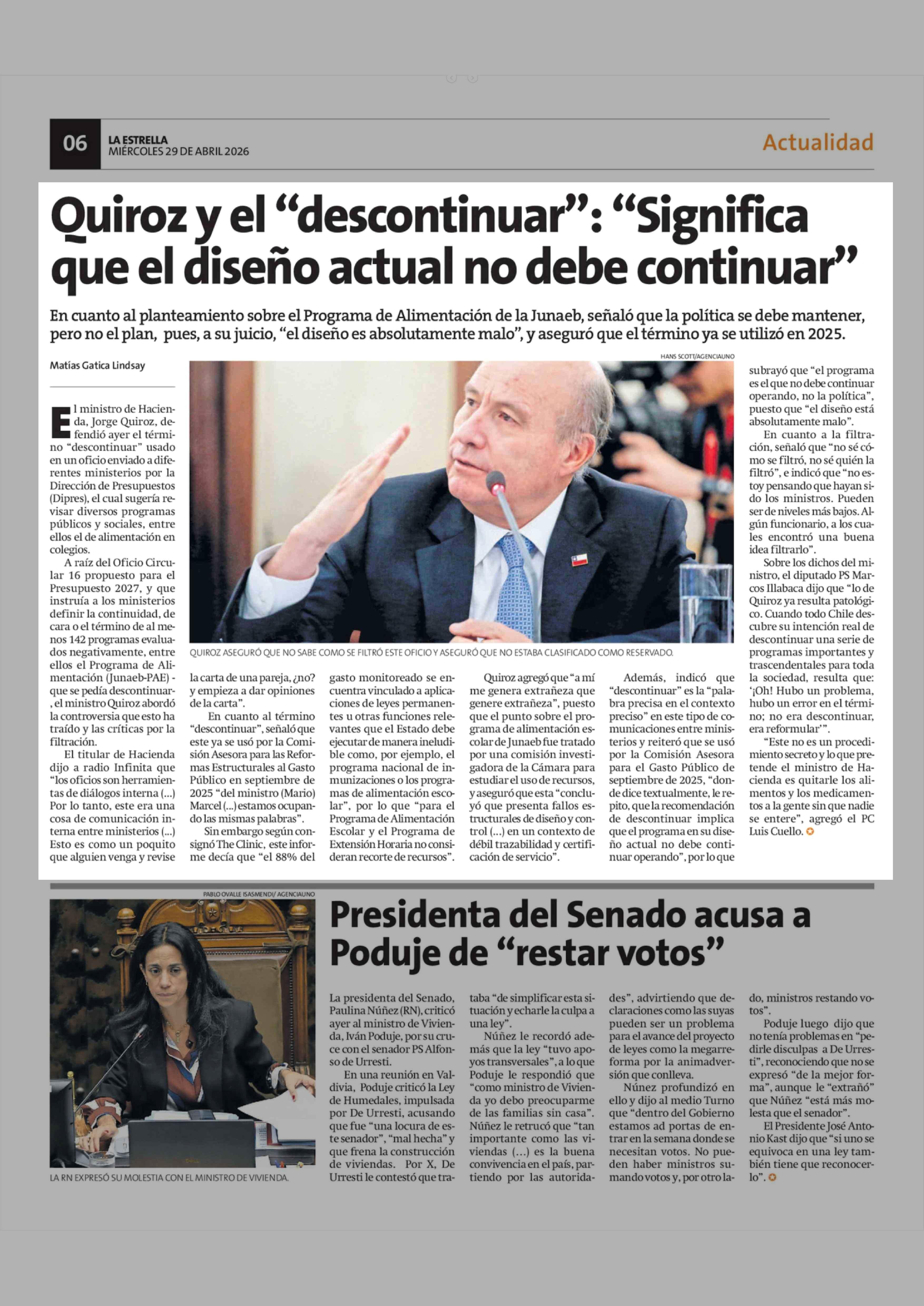 Título: Quiroz y el "descontinuar": "Significa que el diseño actual no debe continuar"