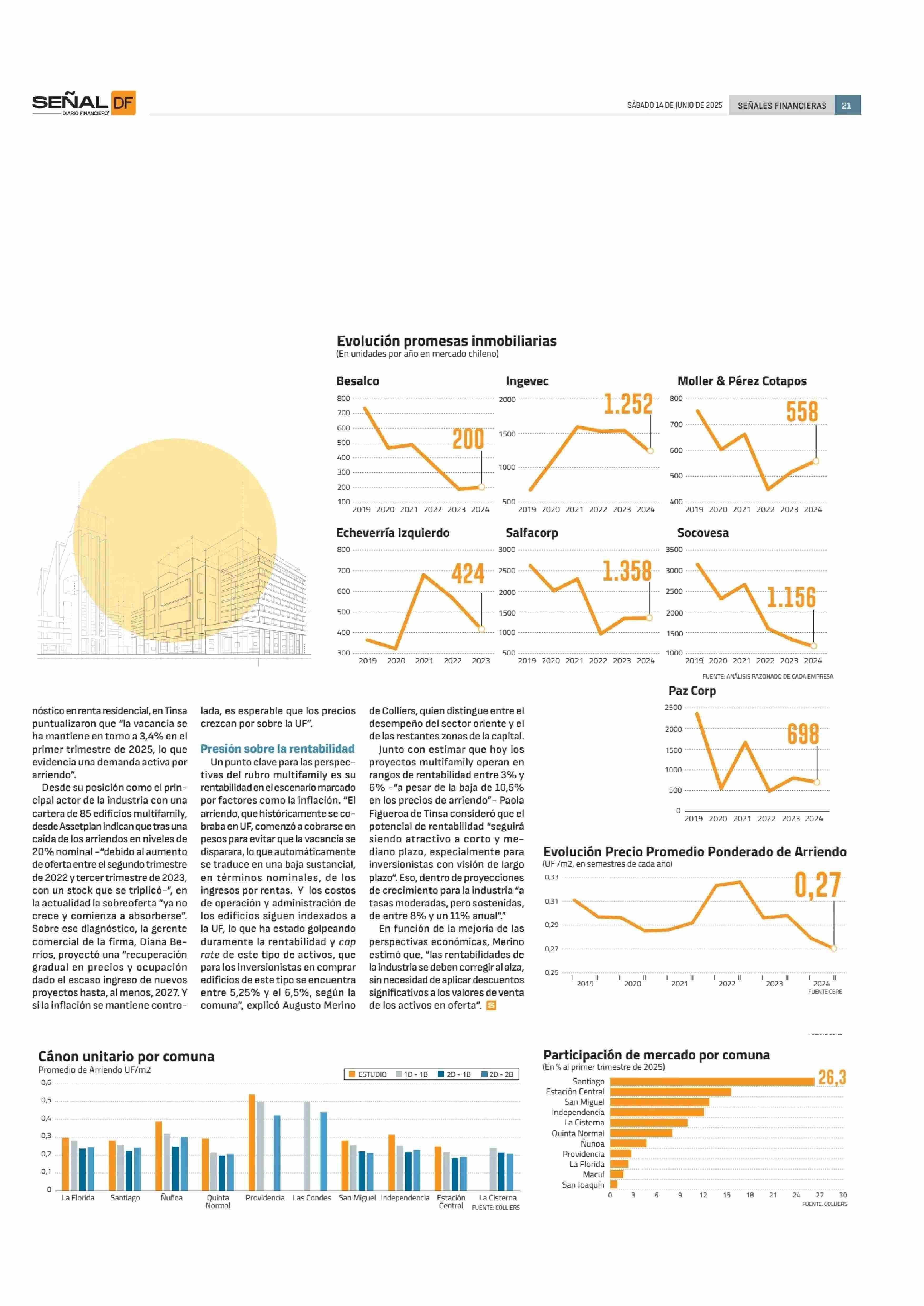 Renta residencial ajusta rentabilidad tras baja en precios de arriendo, pero apuesta a crecer a dos e dígitos en 2026 14-06-2025 Diario Financiero |