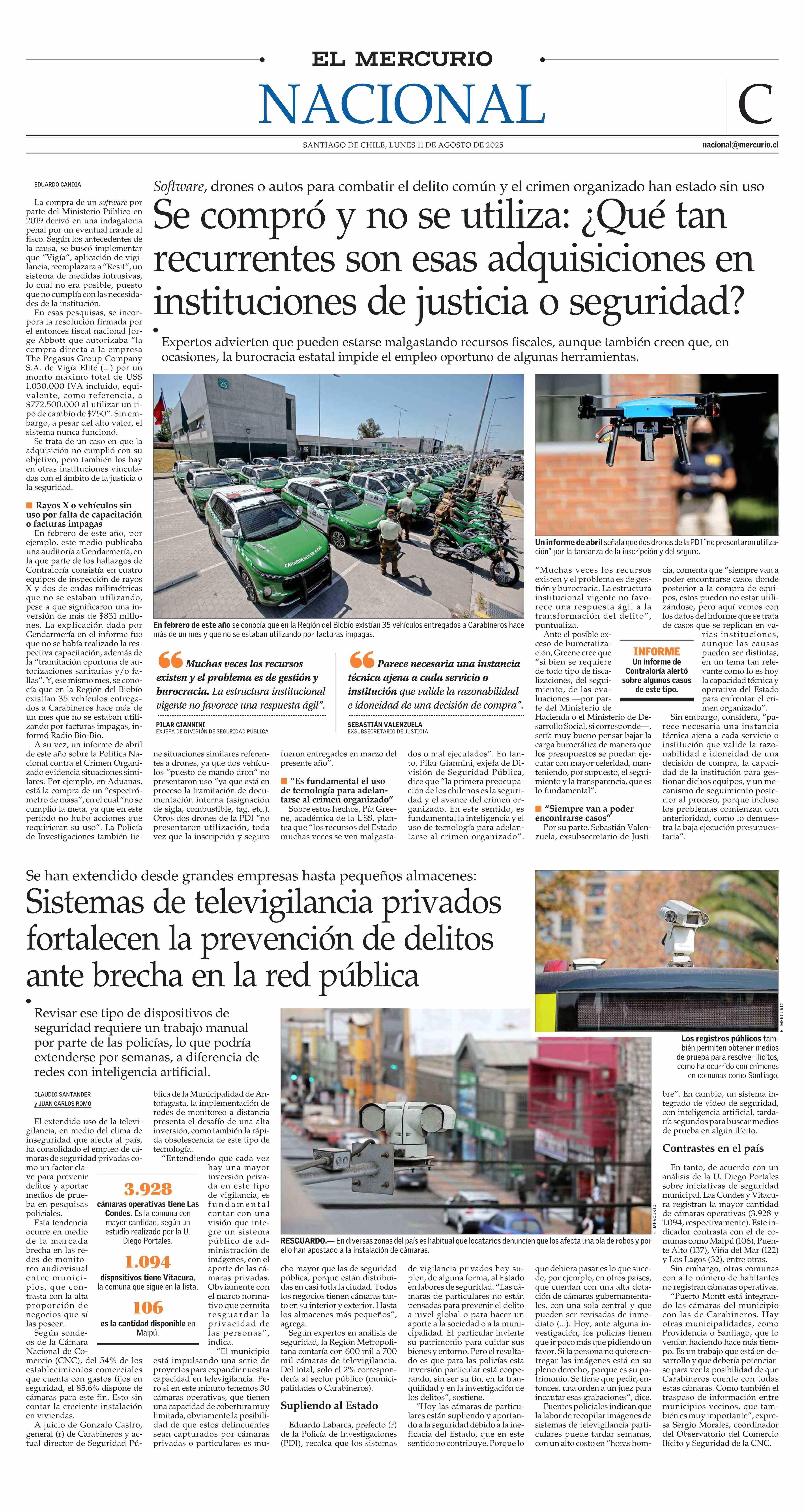 Sistemas de televigilancia privados fortalecen la prevención de delitos ante brecha en la red pública 11-08-2025 El Mercurio |