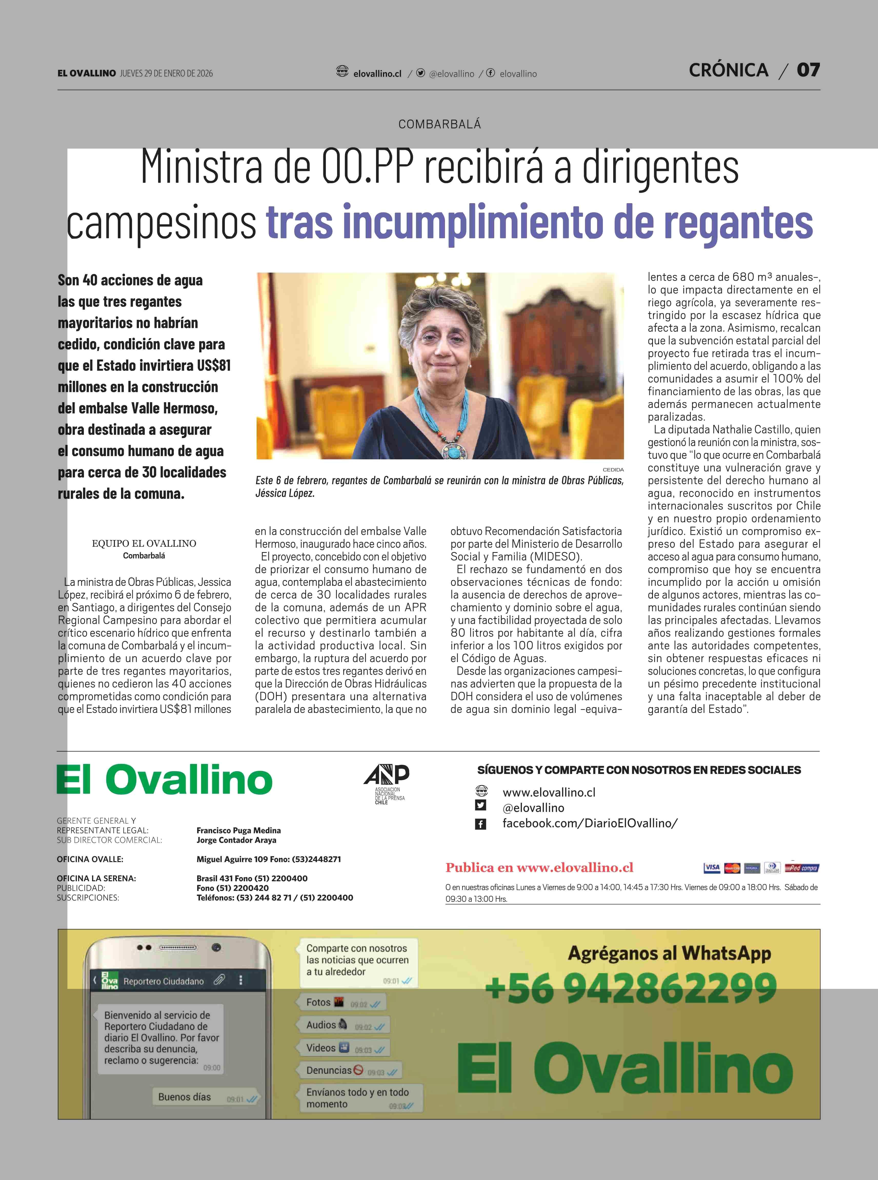 Fecha: 29-01-2026 Sector: Noticia general Región: Región de Coquimbo