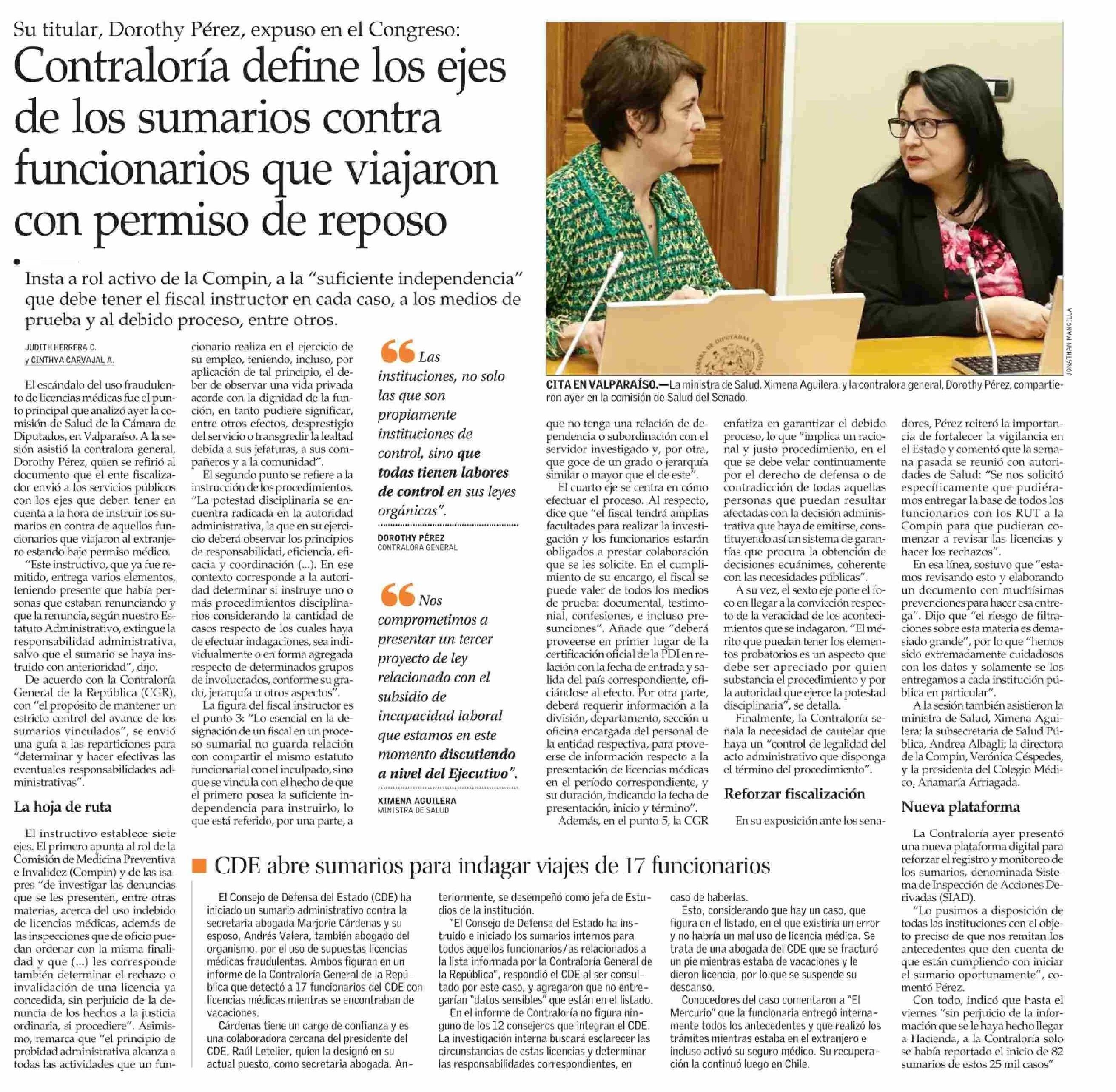 Contraloría define los ejes de los sumarios contra con permiso de reposo funcionarios que viajaron 03-06-2025 El Mercurio |