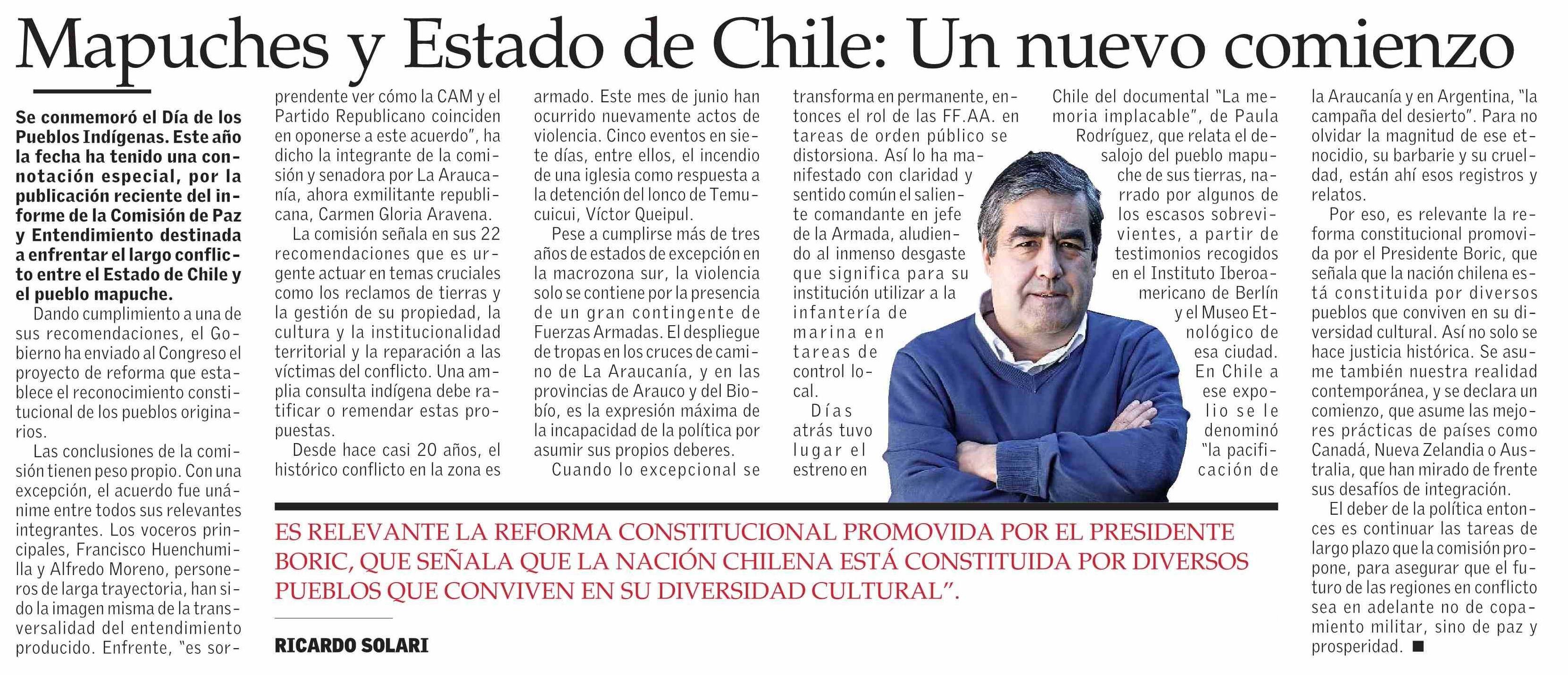 Mapuches y Estado de Chile: Un nuevo comienzo 22-06-2025 El Mercurio |
