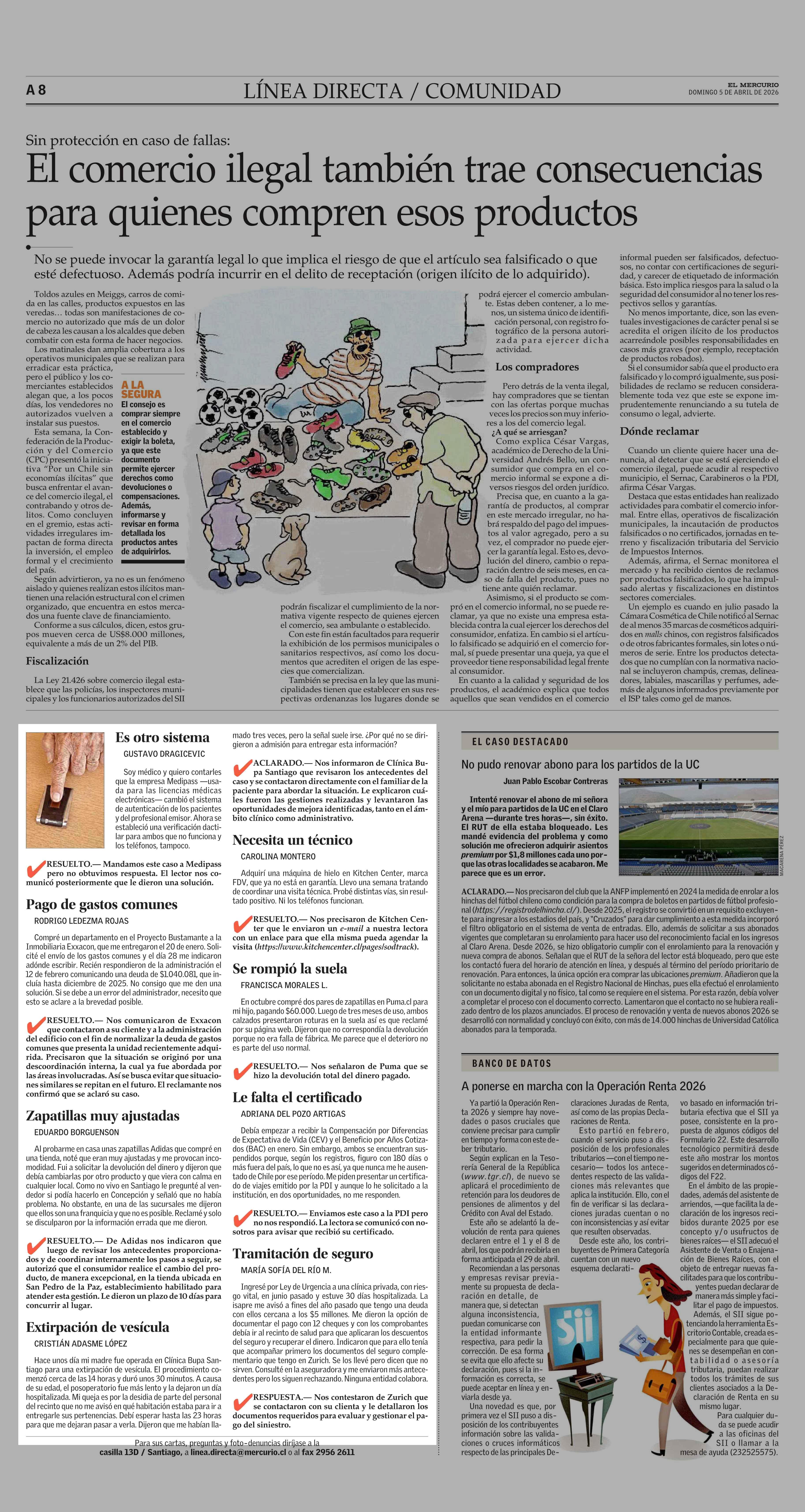 Extirpación de vesícula 05-04-2026 El Mercurio |