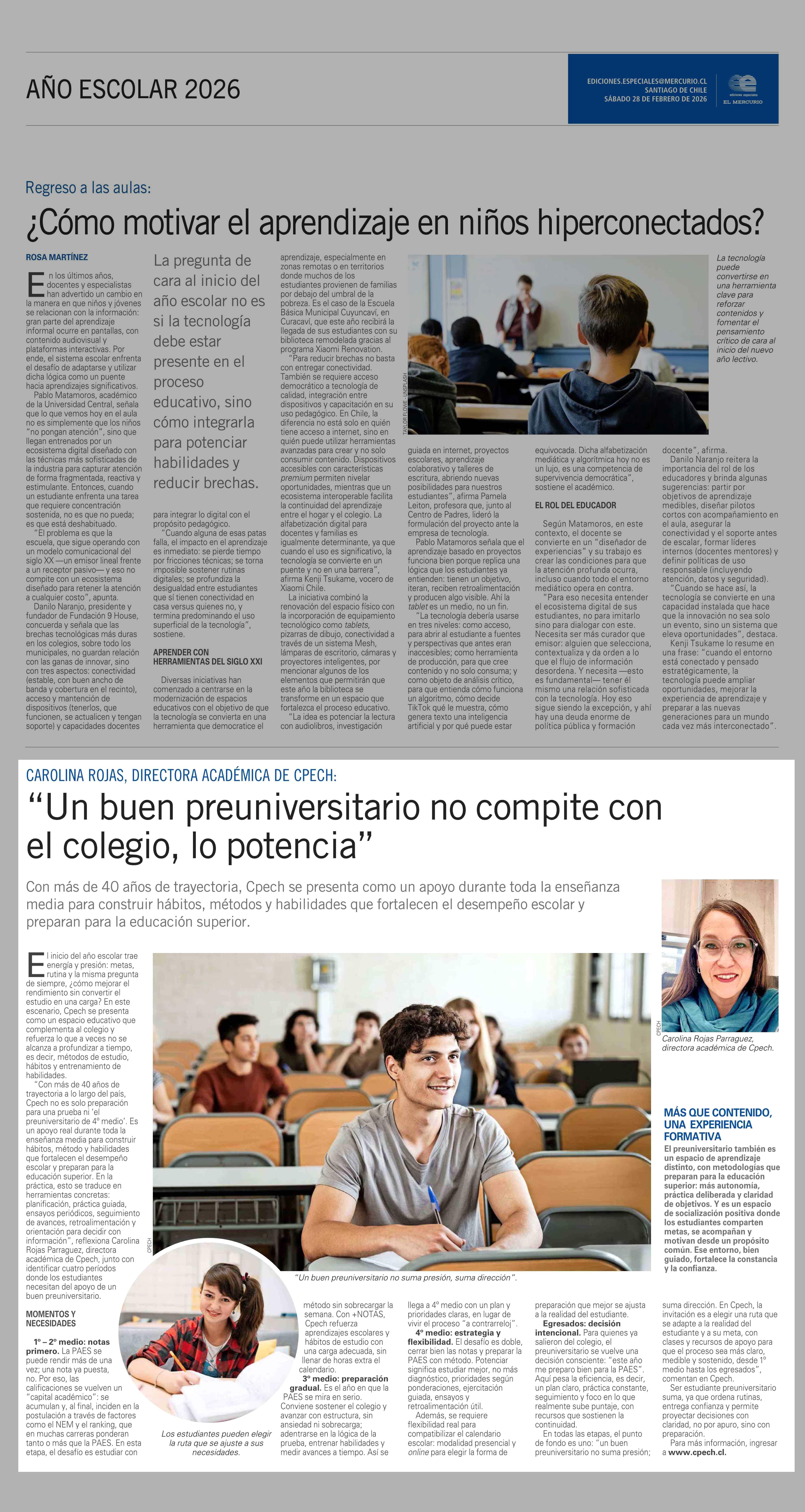 “Un buen preuniversitario no compite con el colegio, lo potencia” 28-02-2026 El Mercurio |
