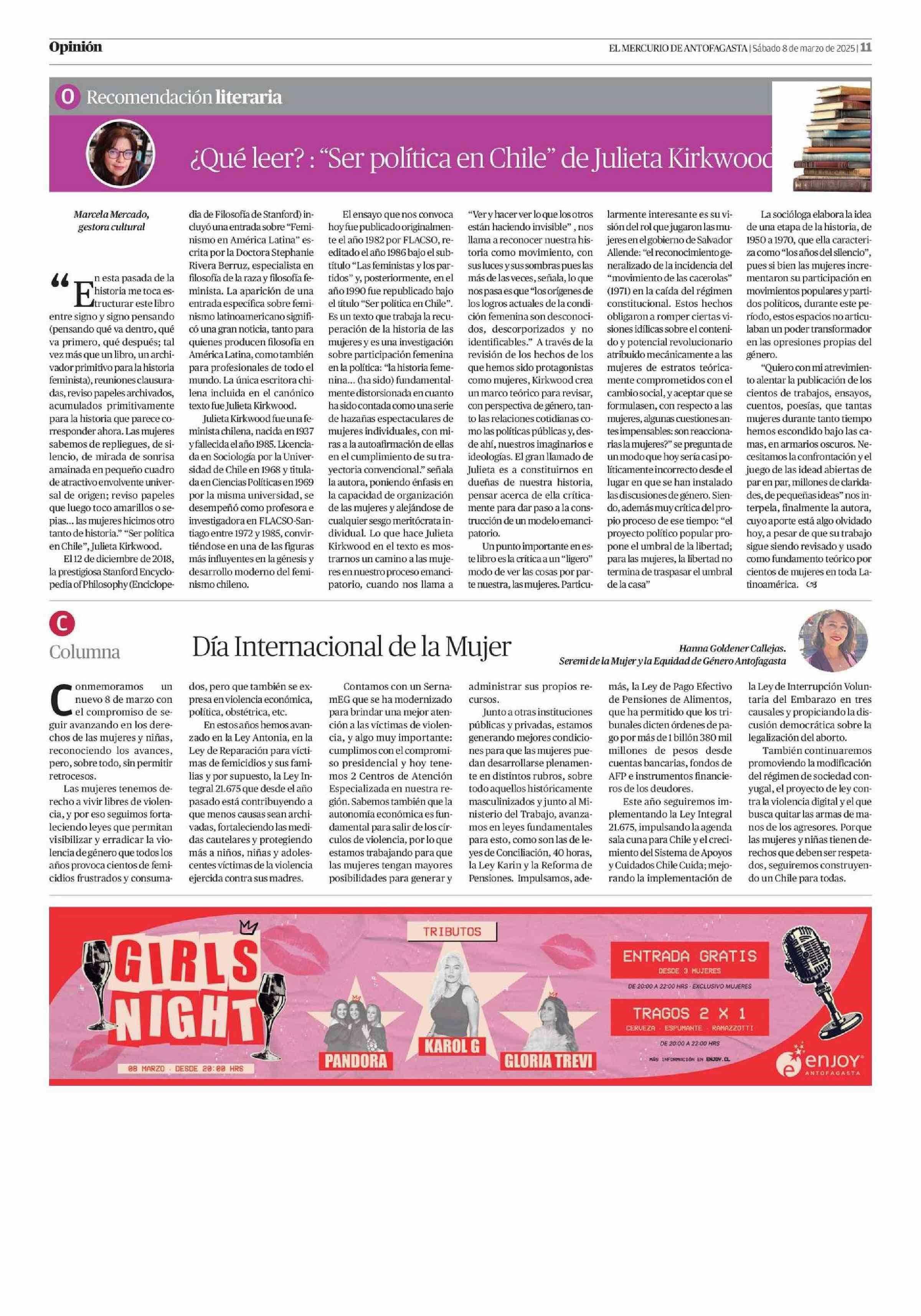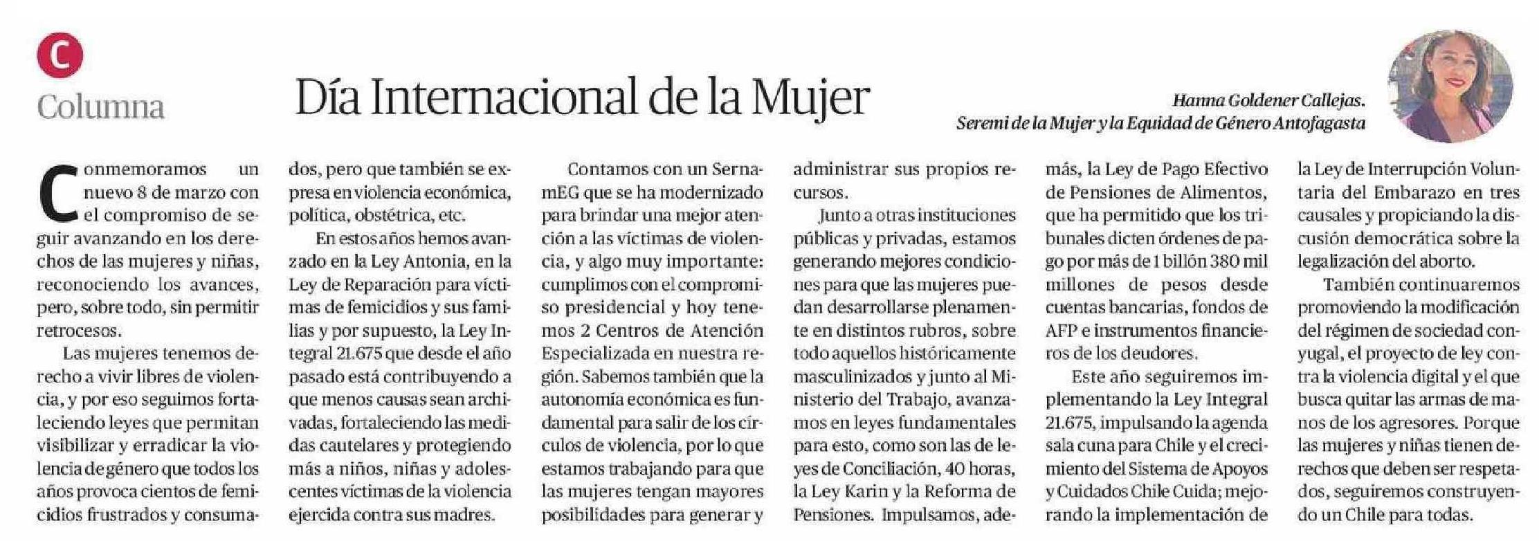 COLUMNAS DE OPINIÓN: Día Internacional de la Mujer 08-03-2025 El Mercurio de Antofagasta |
