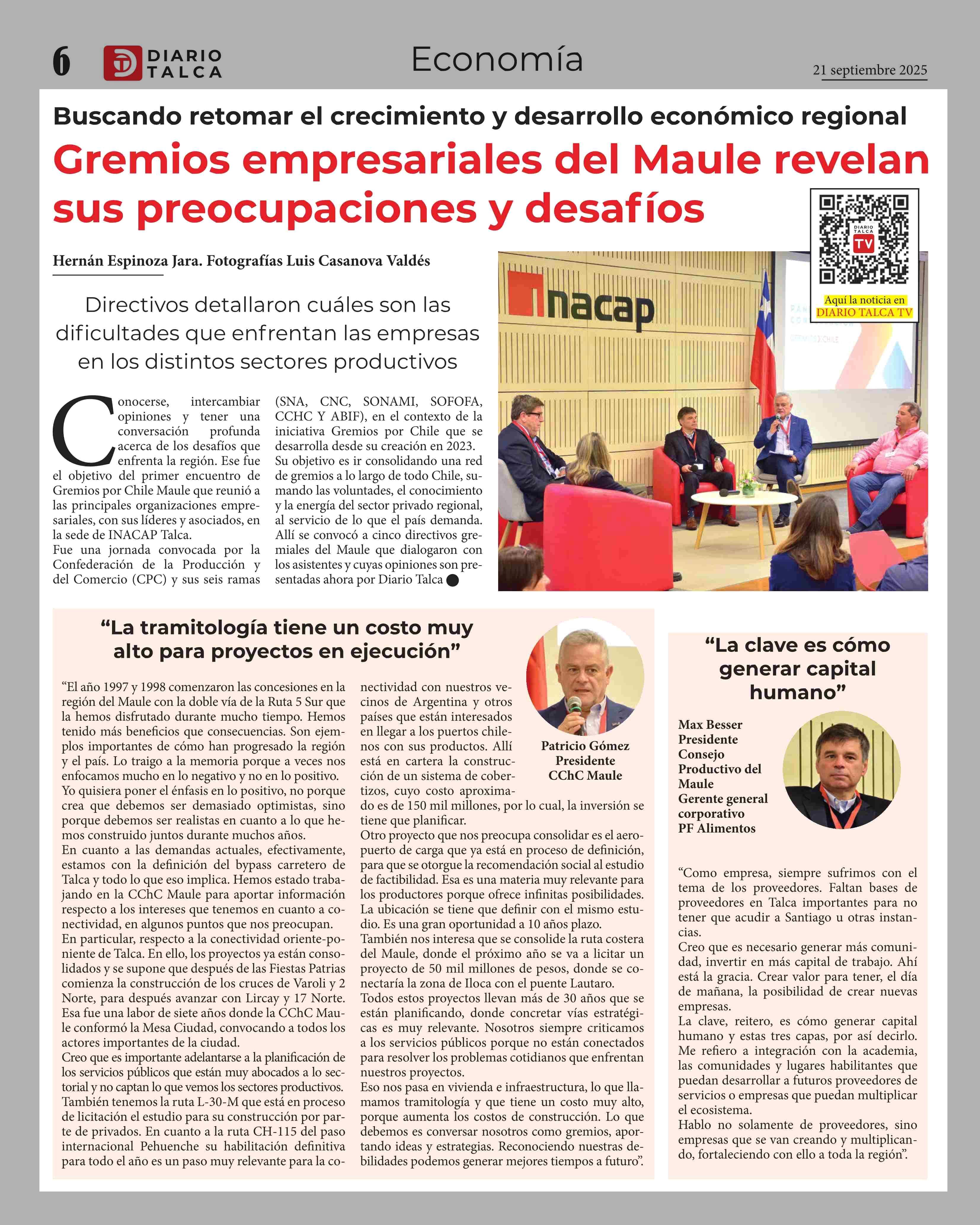 Gremios empresariales del Maule revelan sus preocupaciones y desafíos 21-09-2025 Diario Talca |
