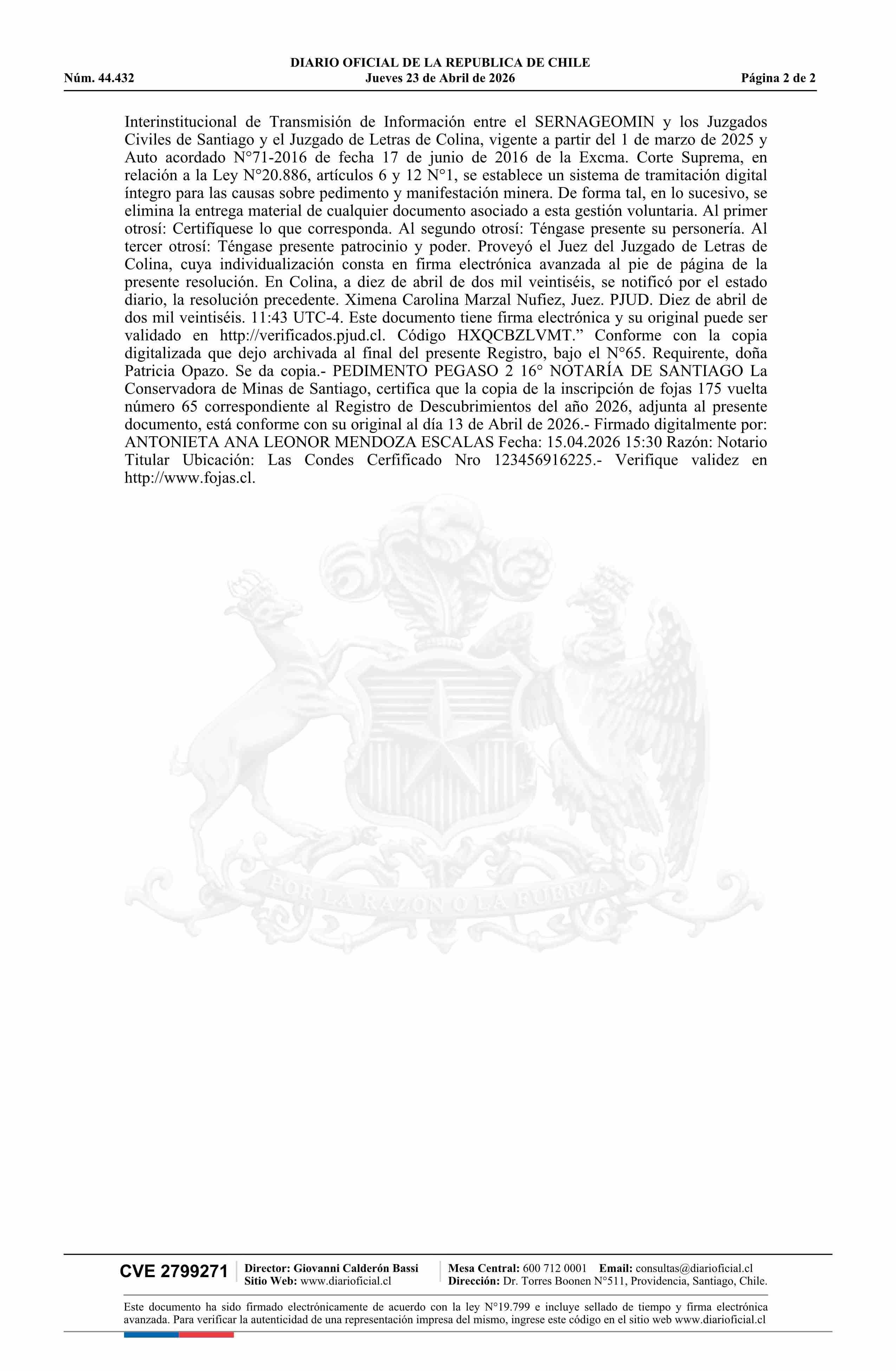 23-04-2026 DIARIO OFICIAL CHILE - BOLETÍN OFICIAL DE MINERÍA