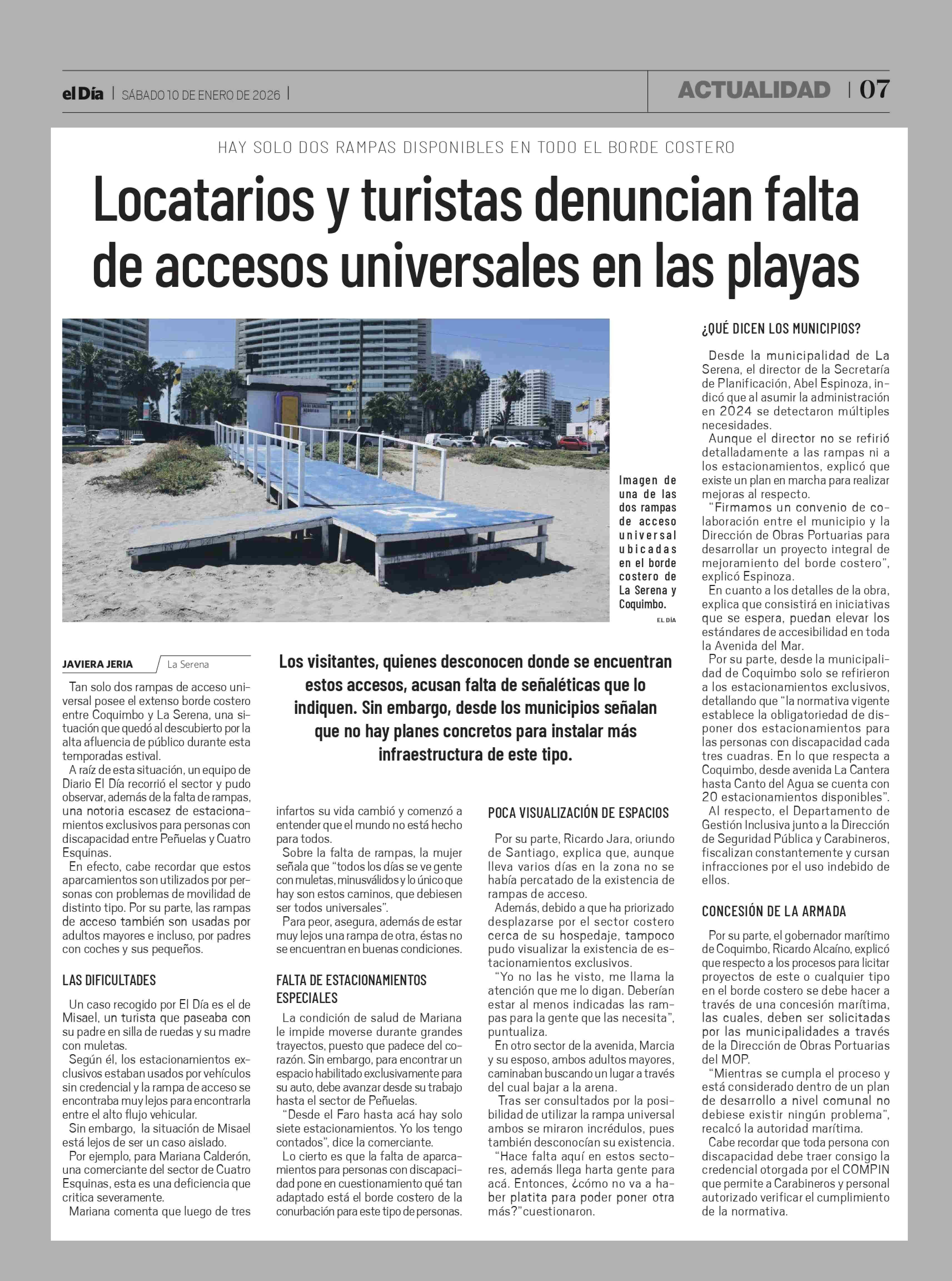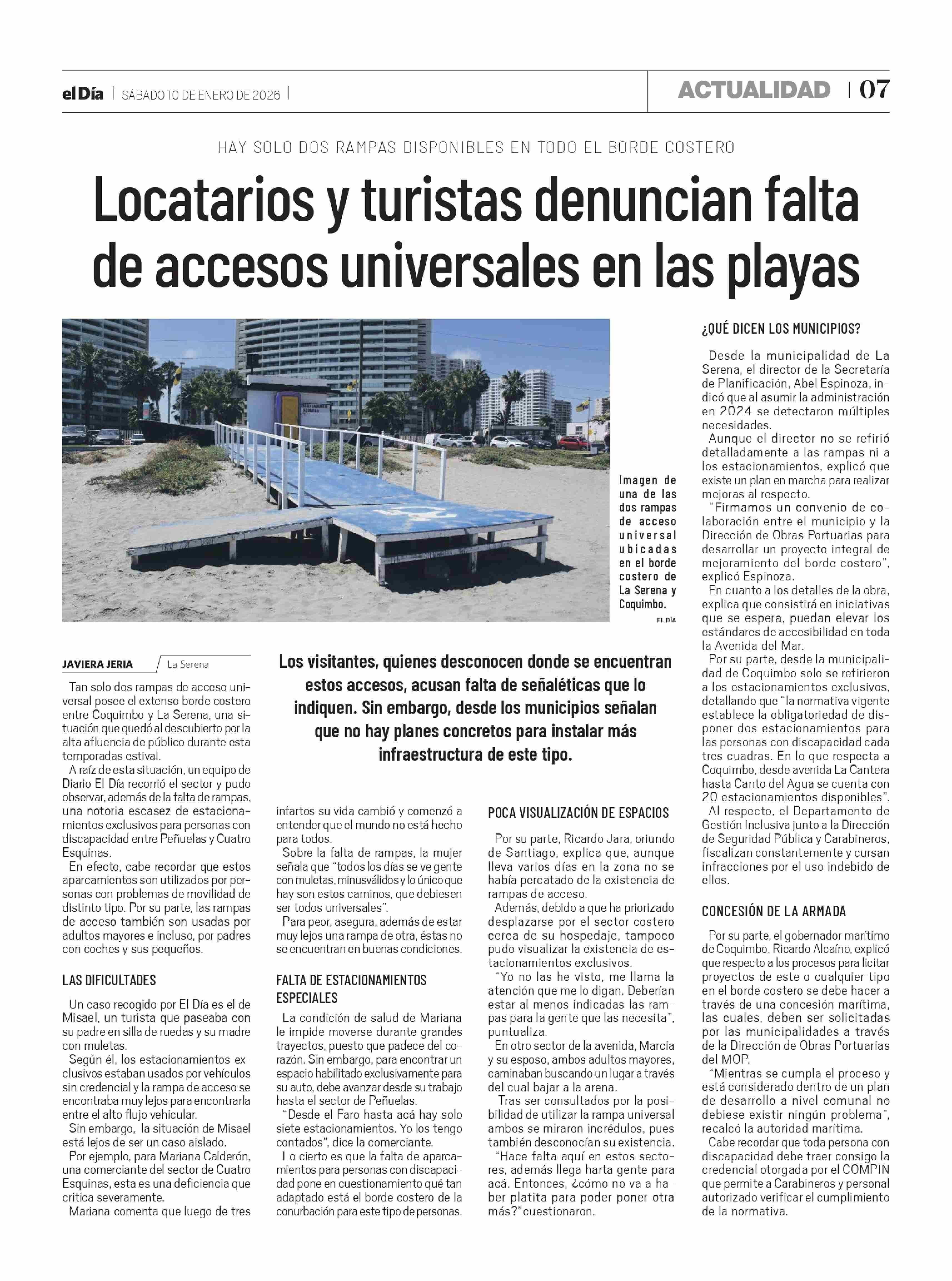 Locatarios y turistas denuncian falta de accesos universales en las playas 10-01-2026 El Día |
