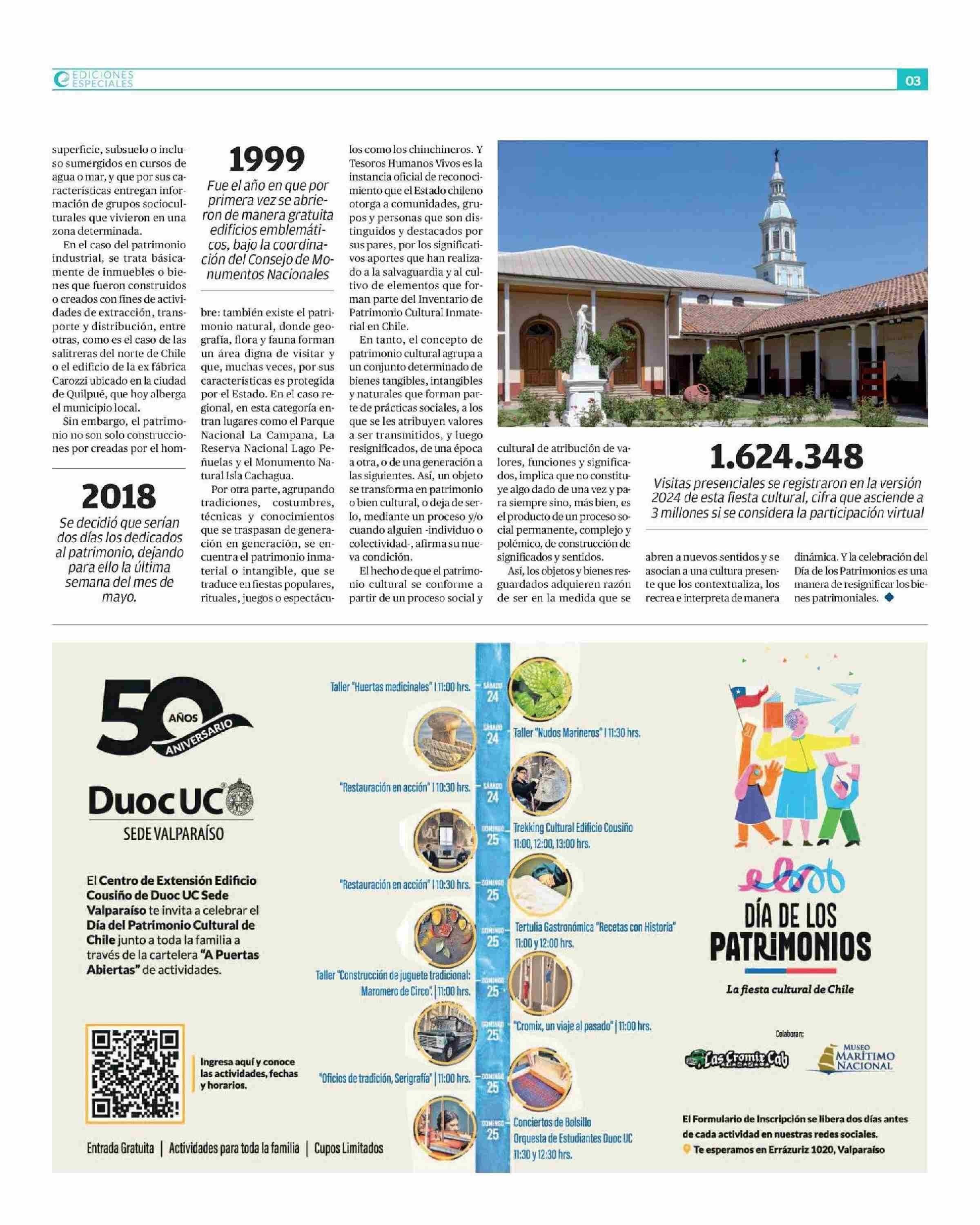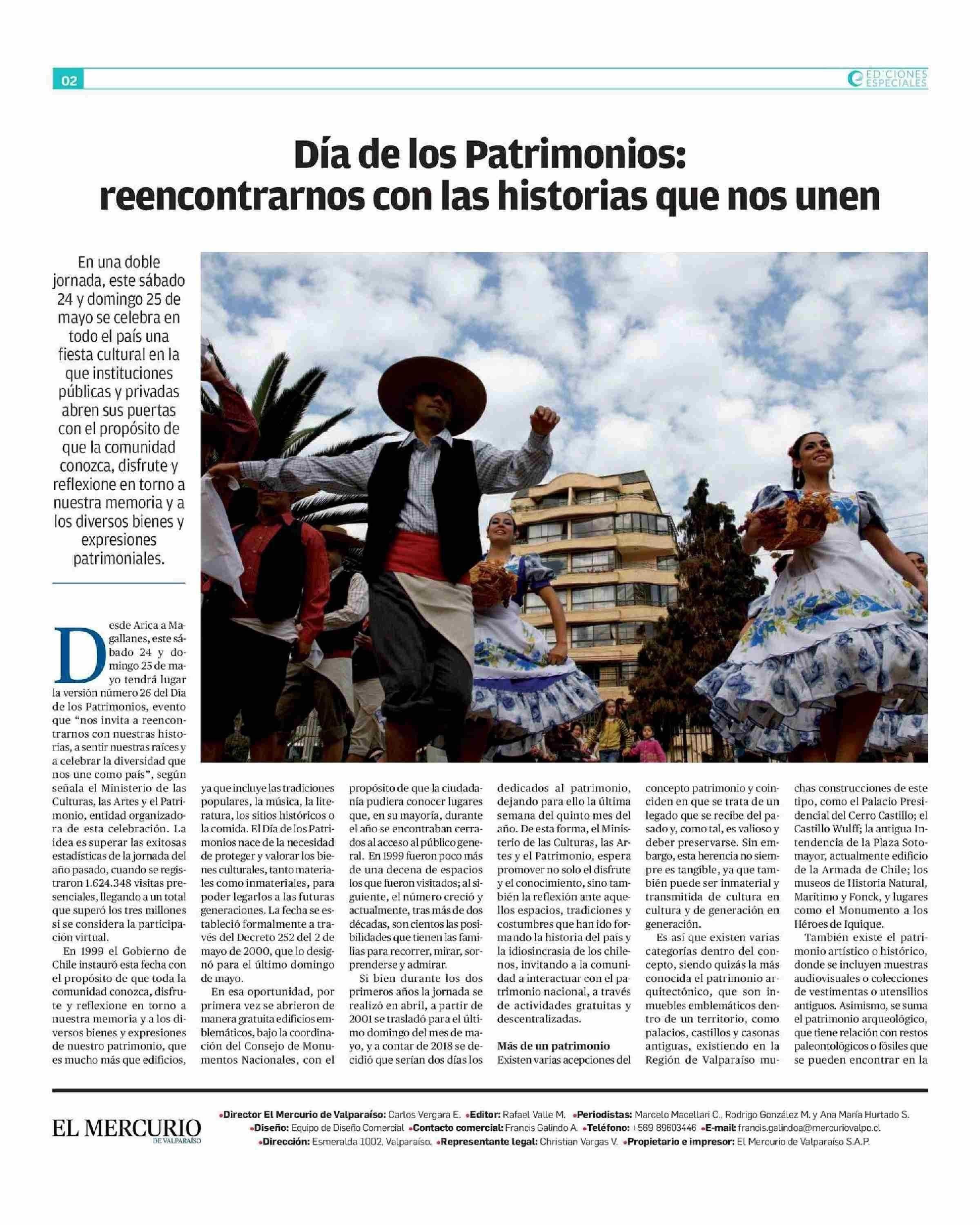 Día de los Patrimonios: reencontramos con las historias que nos unen 23-05-2025 El Mercurio de Valparaíso |