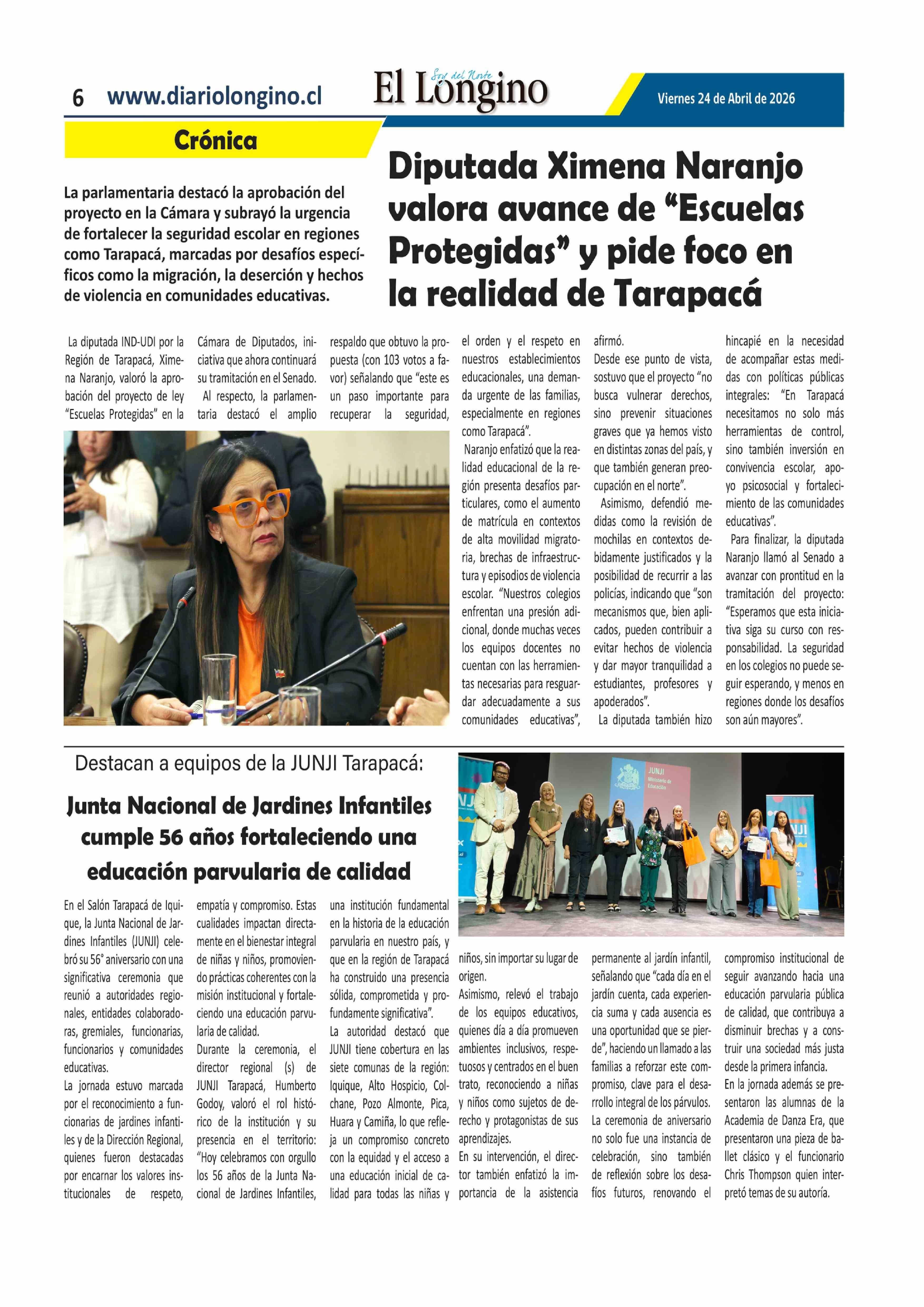 | Fecha: | 24-04-2026 | Sector: | Noticia general | Región: | Región de Tarapacá |