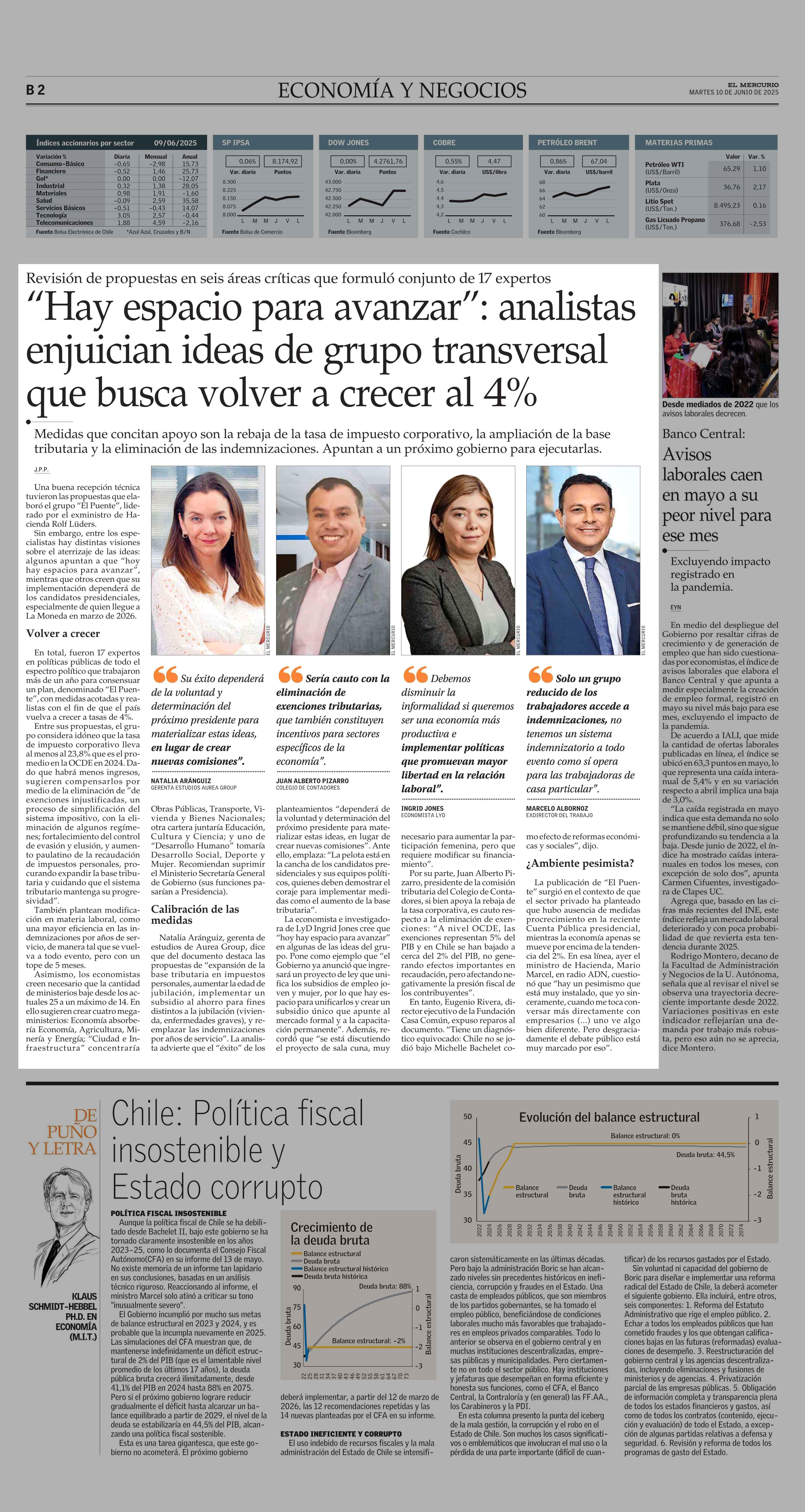 “Hay espacio para avanzar”: analistas enjuician ideas de grupo transversal que busca volver a crecer al 4% 10-06-2025 El Mercurio |