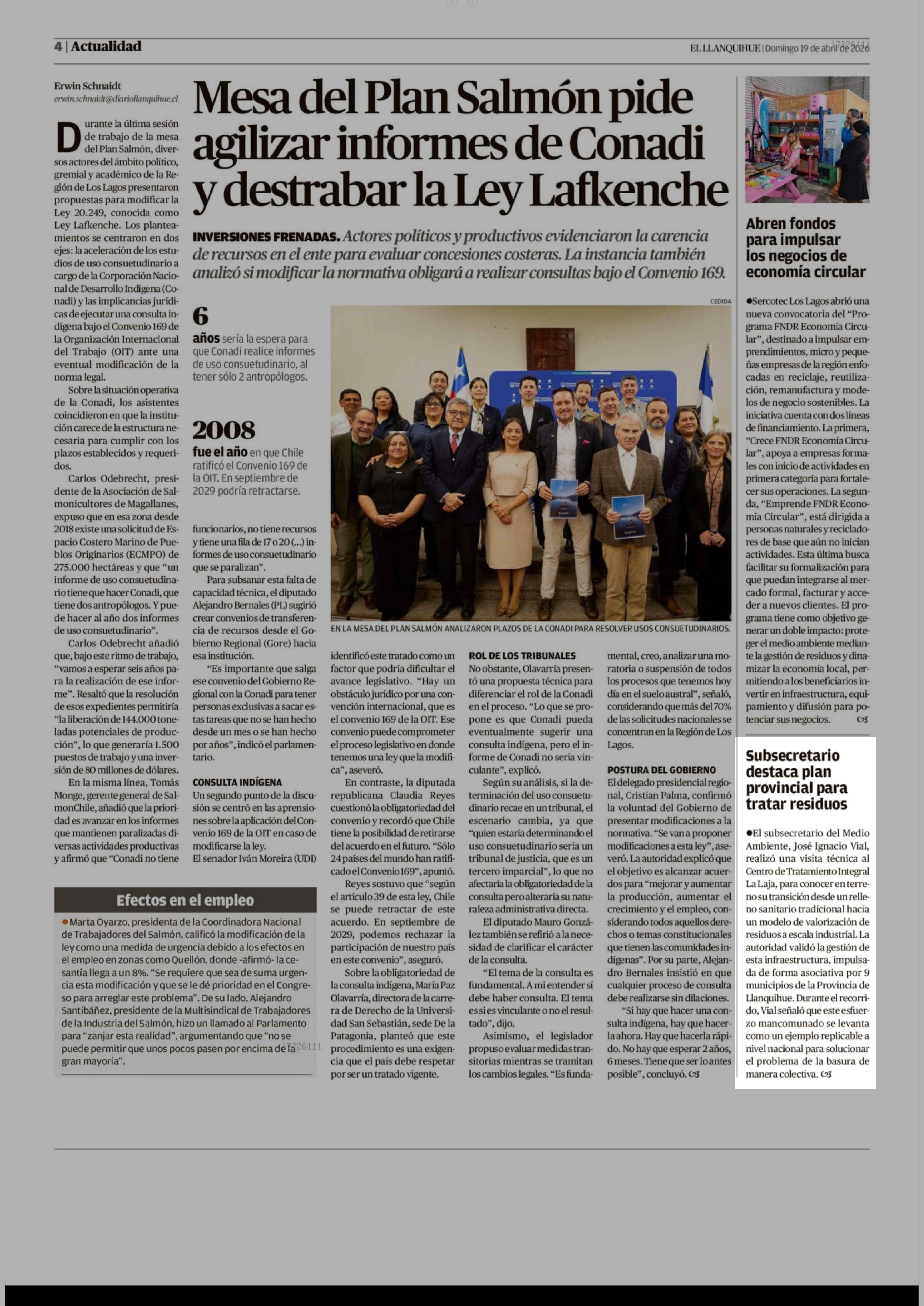 Subsecretario destaca plan provincial para tratar residuos 19-04-2026 El Llanquihue |