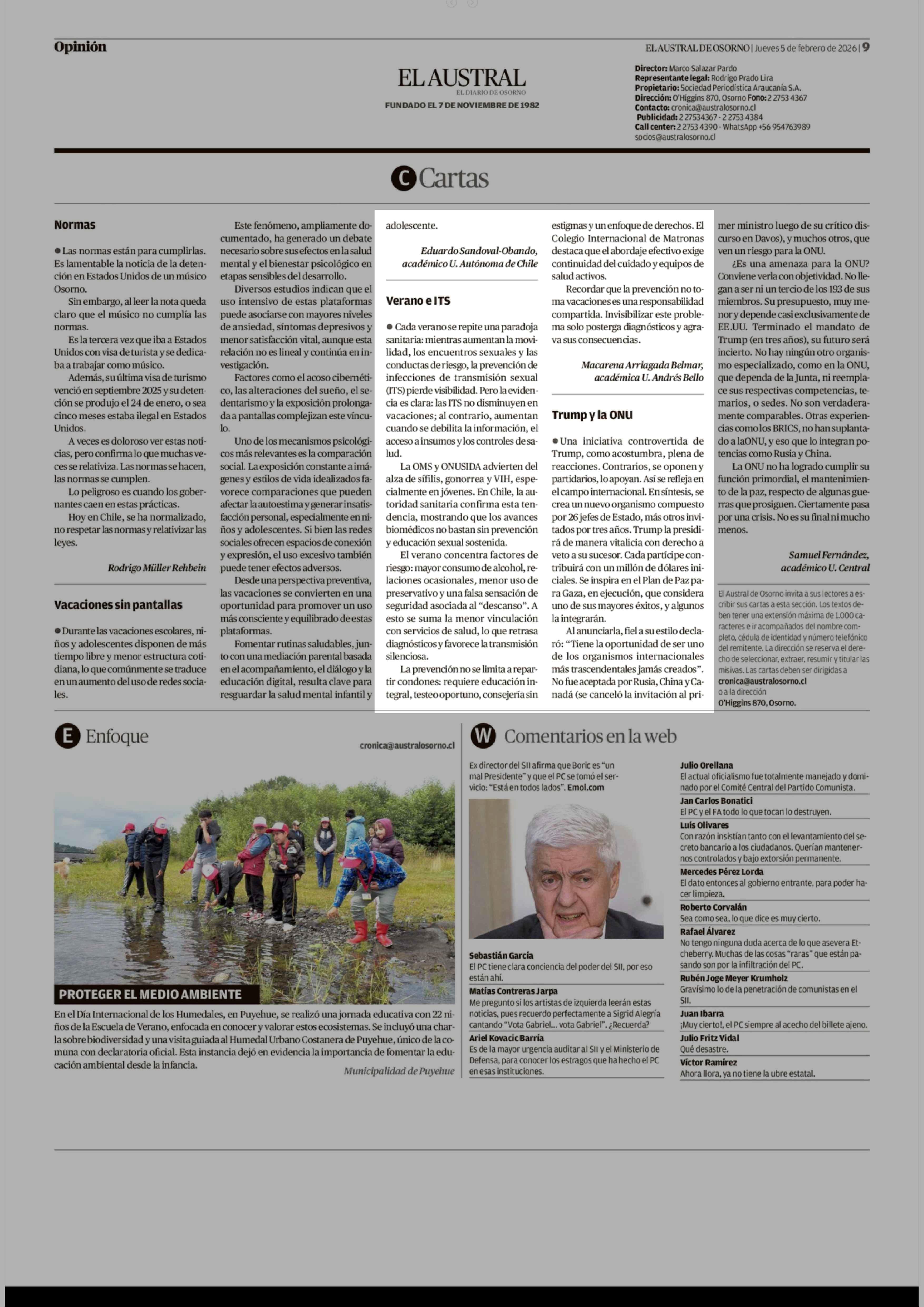 Cartas: Verano e ITS 05-02-2026 El Austral de Osorno |