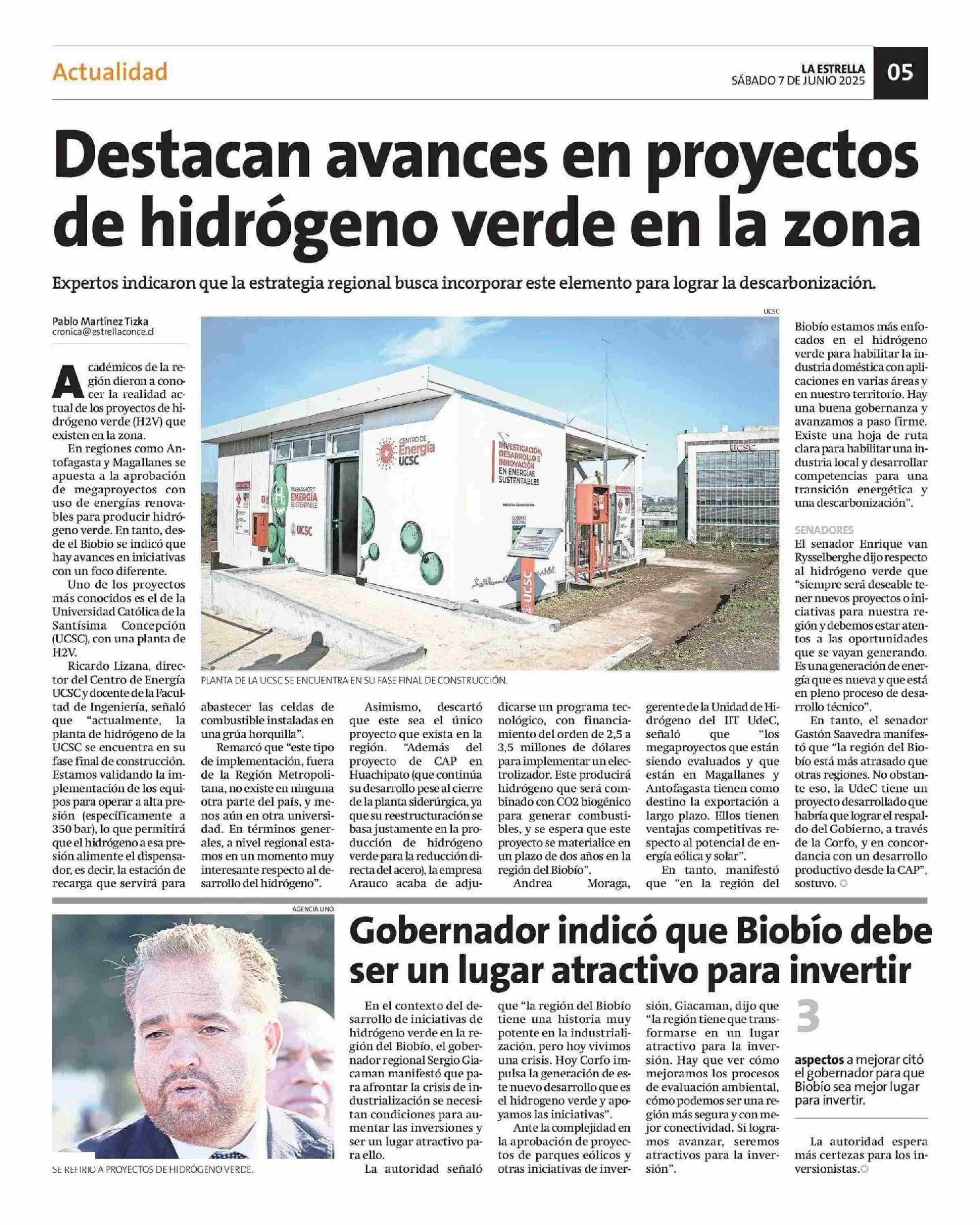 Destacan avances en proyectos de hidrógeno verde en la zona 07-06-2025 La Estrella de Concepción |