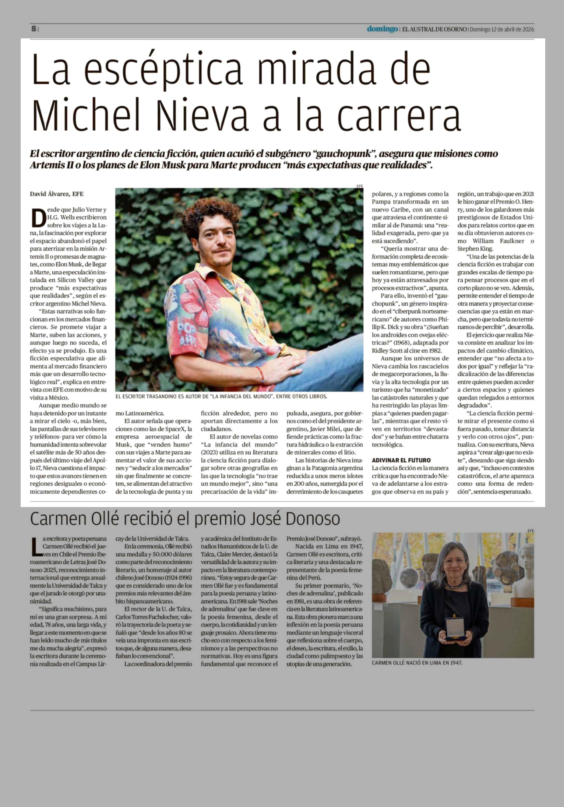 La escéptica mirada de Michel Nieva a la carrera 12-04-2026 El Austral de Osorno |